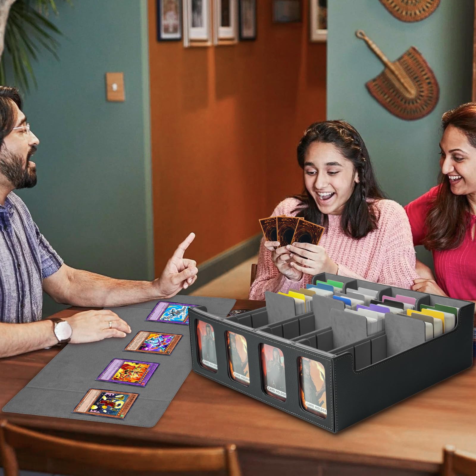 Die ultimative Aufbewahrungslösung für deine wertvollen Sammelkarten! Diese Box bietet Platz für über 3000 Karten - perfekt für MTG, Pokemon, Yu-Gi-Oh! und mehr. Mit 36x30x12cm und 4 Reihen bleibt alles organisiert. Der magnetische Verschluss hält sicher, auch wenn die Box umkippt. Aus hochwertigem PU-Leder mit weichem Innenfutter - schützt vor Kratzern und Beschädigungen. Enthält 24 bunte Trennwände und 4 verstellbare Trennwände für perfekte Organisation. Der abnehmbare Deckel kann sogar als Spielunterlage genutzt werden. Die seitlichen Fenster zeigen deine Lieblingskarten. Ein Must-Have für jeden ernsthaften Sammler oder Turnierspieler!