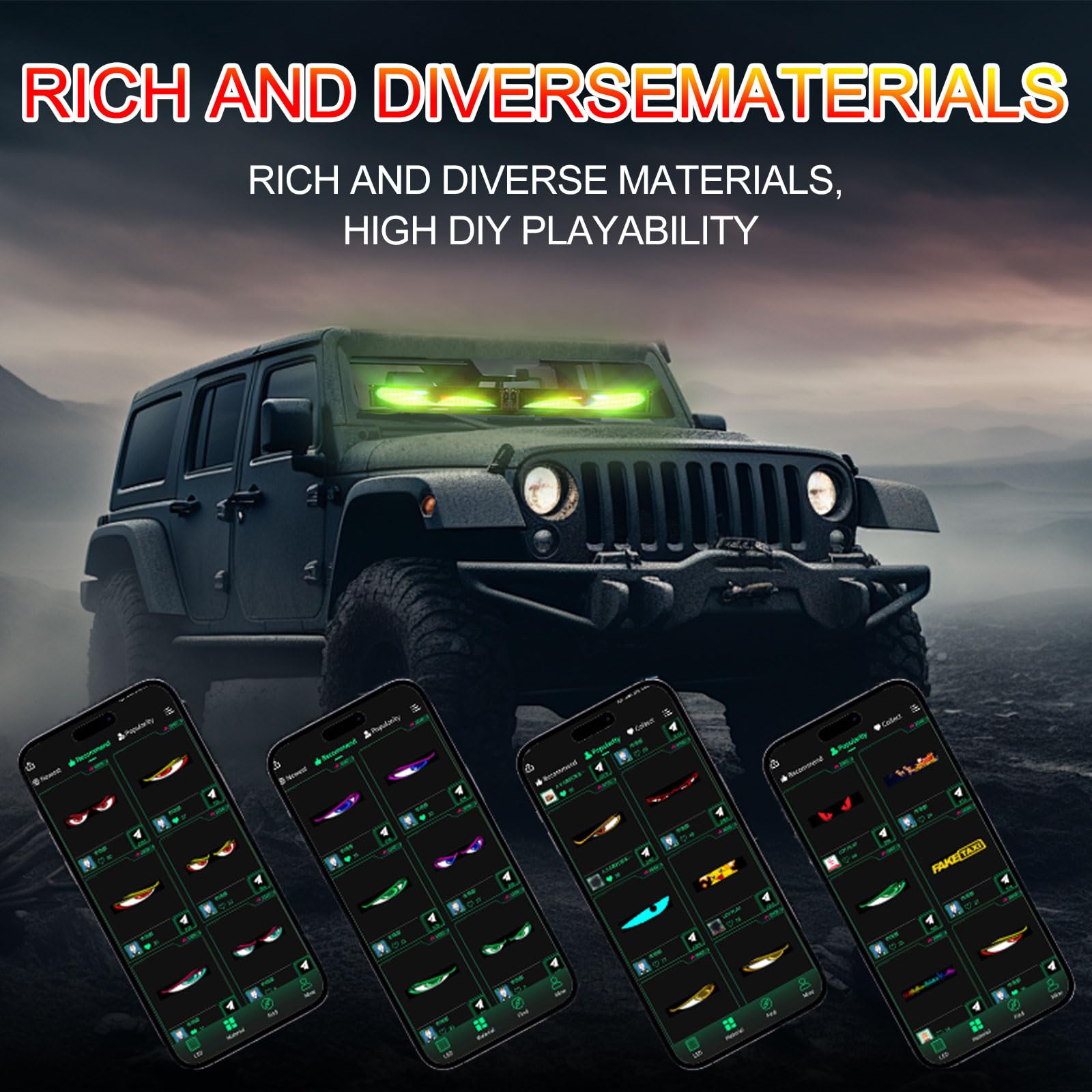 Mega coole LED-Augen für dein Auto oder LKW! 2er Set mit je 12x59,5 cm - richtig auffällig. Voll programmierbar per Smartphone-App: schreibe Texte, wähle Animationen oder synchronisiere mit Musik! Auch mit Fernbedienung steuerbar - wechsel einfach zwischen verschiedenen Modi. Energieeffiziente LEDs - belasten die Batterie nicht. Mehrere Stromoptionen: Auto-Netzteil, USB oder Powerbank. Einfache Installation mit doppelseitigen Klebepads. Perfekt für Autoshows, Partys oder einfach um aufzufallen. Mach dein Fahrzeug zum absoluten Hingucker!