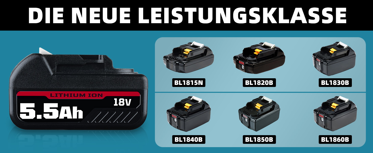 Nie wieder Stromausfall beim Arbeiten! Diese zwei 18V Akkus mit 5.5Ah Kapazität sind perfekte Ersatzteile für BL1860B, BL1850B und viele andere Modelle. Mit praktischer LED-Anzeige siehst du immer, wie viel Saft noch drin ist. Li-Ion-Technologie sorgt für 430% mehr Leistung als alte Ni-Cd Akkus - ohne Memory-Effekt! Mehrfach geschützt gegen Überhitzung, Tiefentladung und Kurzschluss. Einfach aufladen und loslegen! Kompatibel mit vielen Werkzeugen von verschiedenen Marken. Perfekt für Heimwerker und Profis - mit 1 Jahr Garantie für sorgenfreies Arbeiten!