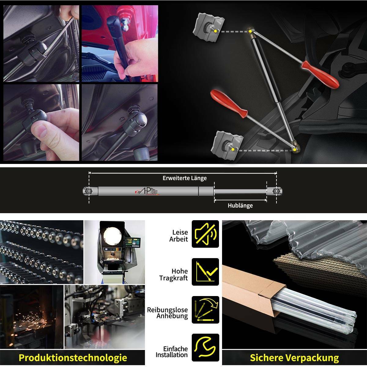 Schluss mit der quietschenden oder schwergängigen Motorhaube! Diese LST Gasdruckfedern sind die perfekte Lösung für deinen BMW 3er der Baureihen E90, E91, E92 und E93 (2004-2013). Das 2er-Set mit je 330N Ausschubkraft sorgt dafür, dass deine Motorhaube leicht zu öffnen ist und sicher in der geöffneten Position bleibt. Mit einer Gesamtlänge von 415 mm und einer Länge von Befestigungspunkt zu Befestigungspunkt von 397 mm passen sie genau. Kompatibel mit zahlreichen OEM-Nummern inklusive 51237060550 und 51237129190. Einfache Montage - einfach die alten, schlappen Federn ausbauen und diese neuen einsetzen. Schon geht die Motorhaube wieder wie von selbst auf und zu! Ein wichtiges Sicherheitsfeature für jede Motorwartung und ein kleines Upgrade, das den Alltag deutlich angenehmer macht.