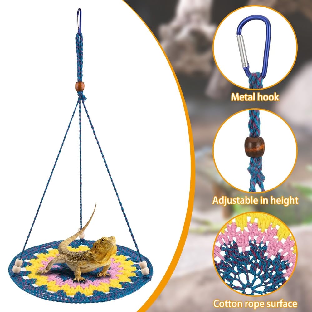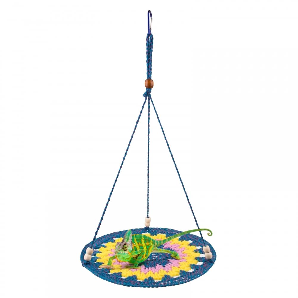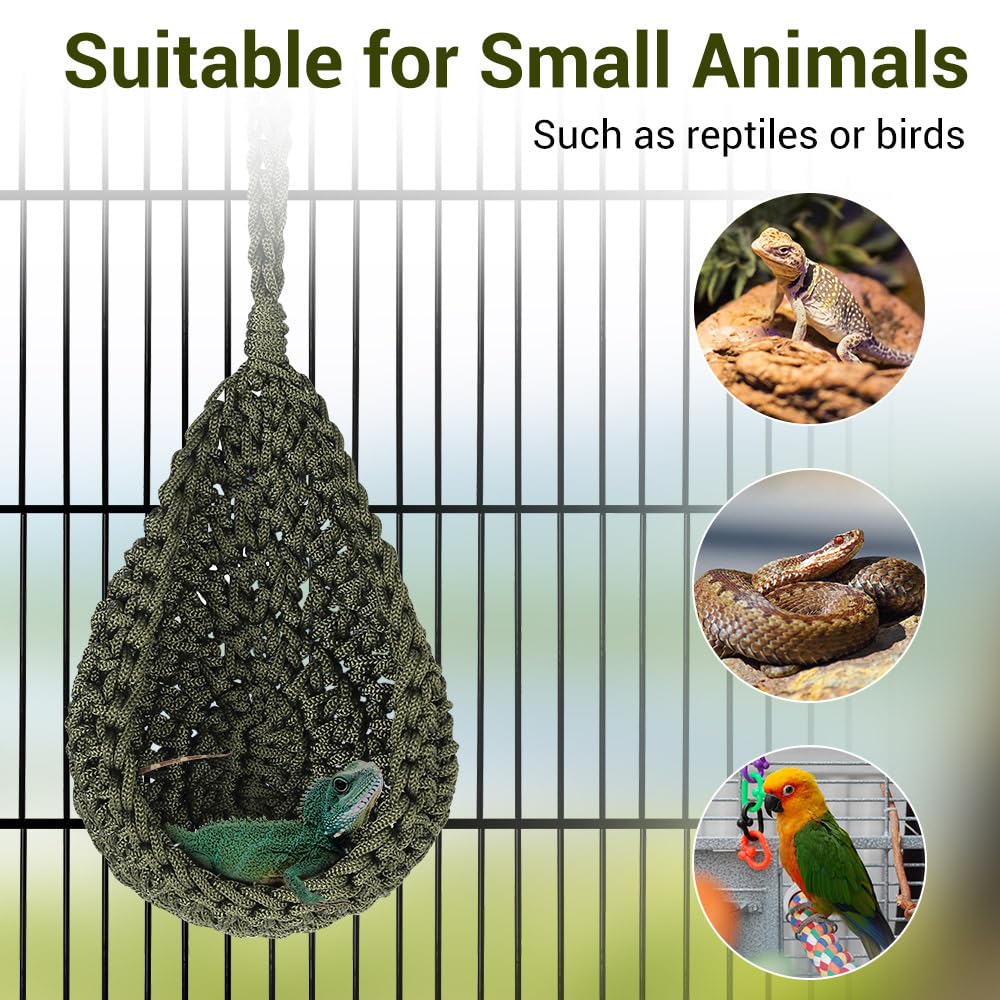 Boah, diese Hängematte für Reptilien ist der absolute Hit für jedes Terrarium! Aus handgewebtem Nylonseil gemacht - super weich, mega bequem und total atmungsaktiv. Deine Bartagame, dein Gecko oder andere Reptilien werden es lieben! Mit 17 cm Durchmesser und 22 cm Höhe (gesamt 36 cm mit Seil) bietet sie genug Platz zum Chillen, Schlafen oder Klettern. Die Metallhaken sind stabil und halten sicher - nichts fällt runter! Einfach im Terrarium anbringen und zuschauen, wie deine kleinen Lieblinge ihren neuen Lieblingsplatz entdecken. Perfekt für Bartagamen, Kronengeckos, aber auch für Kaninchenbabys oder Meerschweinchen. Macht nicht nur Spaß, sondern sieht auch noch cool aus! Die grüne oder schwarze Farbe passt zu fast jedem Terrarium. Ein super Geschenk für alle Tierfreunde - da strahlen nicht nur die Tiere, sondern auch die Besitzer!