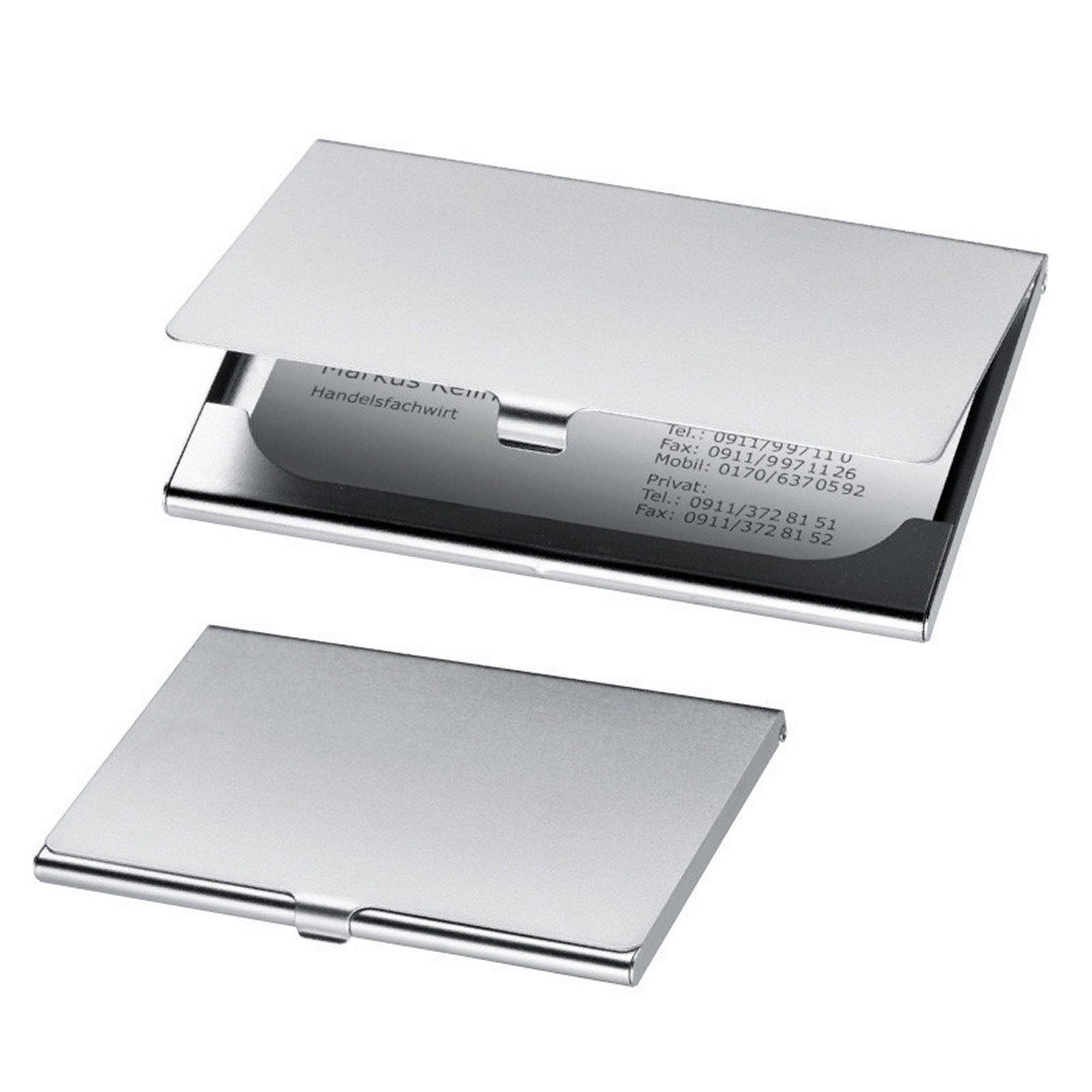 Nie wieder verlorene Visitenkarten! Dieses schicke Visitenkartenbuch in Schwarz mit Lederoptik ist der perfekte Organizer für alle, die beruflich viel netzwerken. Es fasst satte 240 Karten - das reicht für alle wichtigen Kontakte! Mit den 40 transparenten Hüllen bleiben die Karten sicher an ihrem Platz und sind trotzdem immer griffbereit. Super praktisch: Es passt nicht nur für normale Visitenkarten, sondern auch für Kundenkarten, Plastikkarten und sogar Kreditkarten. Vorne und hinten kann man das Buch noch personalisieren, zum Beispiel mit seinem Namen oder Logo. So behält man immer den Überblick und findet sofort, was man sucht. Perfekt für Geschäftsleute, Selbstständige oder einfach alle, die ihre Karten sammeln und ordentlich aufbewahren wollen. Das Design ist schlicht und professionell - passt in jede Aktentasche und macht immer eine gute Figur!