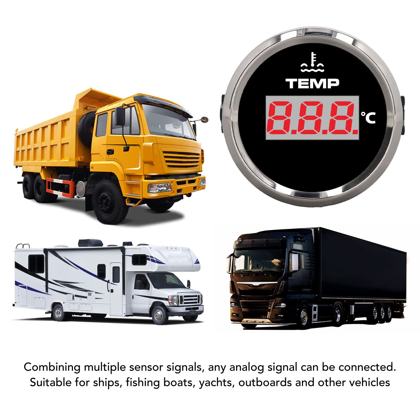 Immer den Überblick über deine Wassertemperatur! Dieses 52mm große Zeiger-Thermometer ist der perfekte Begleiter für dein Wohnmobil, Boot oder Schiff. Mit einem Messbereich von 40°C bis 120°C zeigt es dir zuverlässig die aktuelle Wassertemperatur an. Die farbige Hintergrundbeleuchtung macht die Ablesung auch bei Nacht zum Kinderspiel - und du kannst zwischen verschiedenen Farben wechseln! Die Betriebsspannung von 9-32V DC macht das Thermometer vielseitig einsetzbar. Aus hochwertigem ABS und Edelstahl gefertigt, übersteht es auch raue maritime Bedingungen. Die Installation ist einfach: Mit nur 52mm Einbaudurchmesser findet das Thermometer in fast jedes Armaturenbrett Platz. So behältst du immer die Kontrolle über deine Motortemperatur!