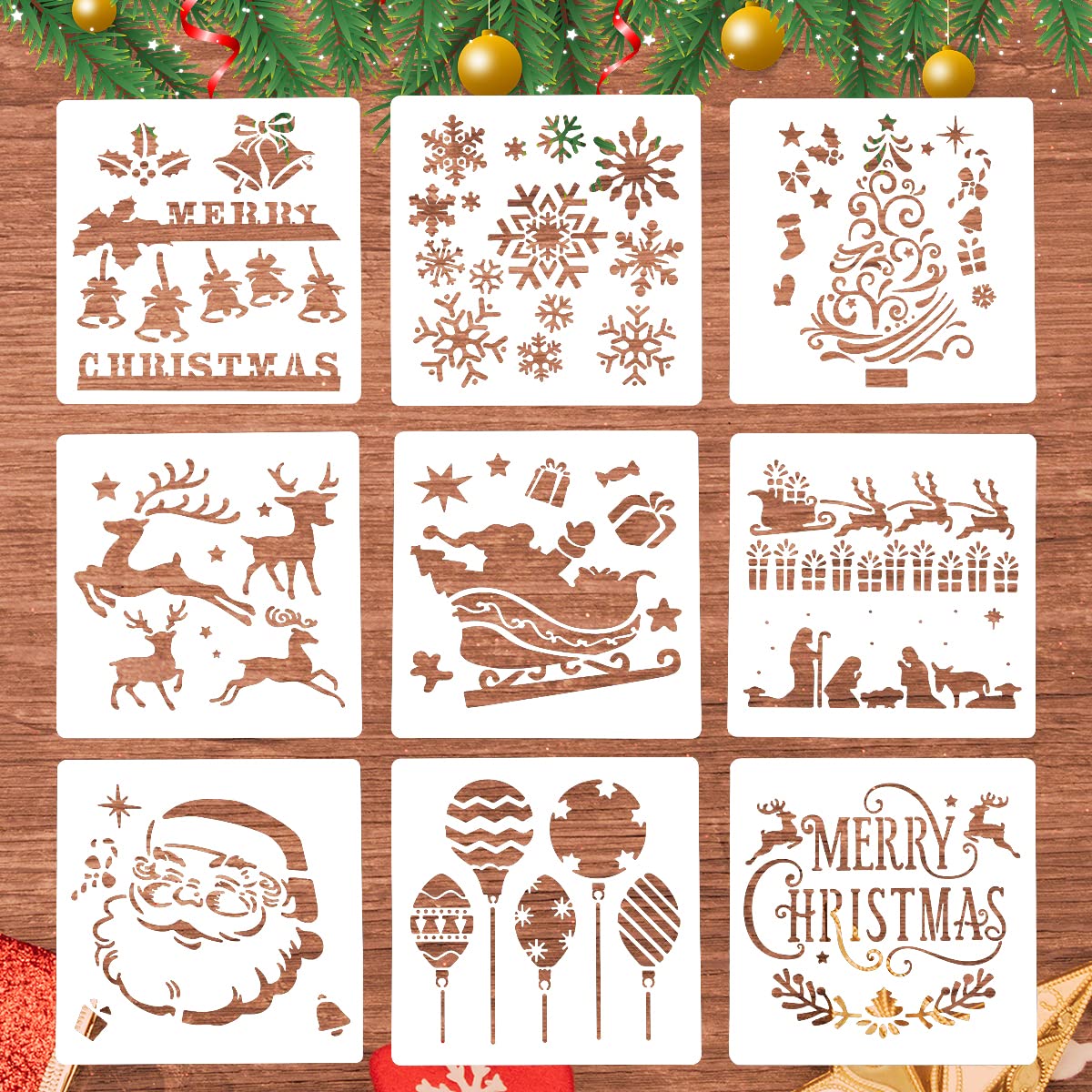Boah, dieses 8-teilige Weihnachtsschablonen-Set ist ja mal perfekt für die Vorweihnachtszeit! Da sind alle wichtigen Motive dabei: Weihnachtsbaum, Weihnachtsmann, Schneeflocken, Rentier, Glocken und mehr - jeweils 13x13cm groß. Aus weichem, flexiblem Kunststoff, absolut sicher auch für Kinder. Du kannst damit total easy Fenster dekorieren, Karten basteln, Geschenkpapier gestalten oder sogar Wände bemalen. Einfach die Schablone festhalten und mit Filzstiften, Farben oder Sprühdose drüber - und schon hast du ein perfektes Weihnachtsmotiv! Nach Gebrauch einfach mit Wasser und Seife abwaschen und sie sind wieder ready für den nächsten Einsatz. Die Kanten sind super glatt, also keine Sorge vor scharfen Ecken. Ob auf Papier, Holz, Glas oder Stoff - diese Schablonen funktionieren auf fast allen Oberflächen. Perfekt für Bastelnachmittage mit der Familie, für den Kindergarten oder einfach um daheim richtig schöne Weihnachtsstimmung zu machen. Mach dein Zuhause zur Weihnachtswerkstatt und lass der Kreativität freien Lauf - mit diesen Schablonen wird jedes Bastelprojekt ein Erfolg!
