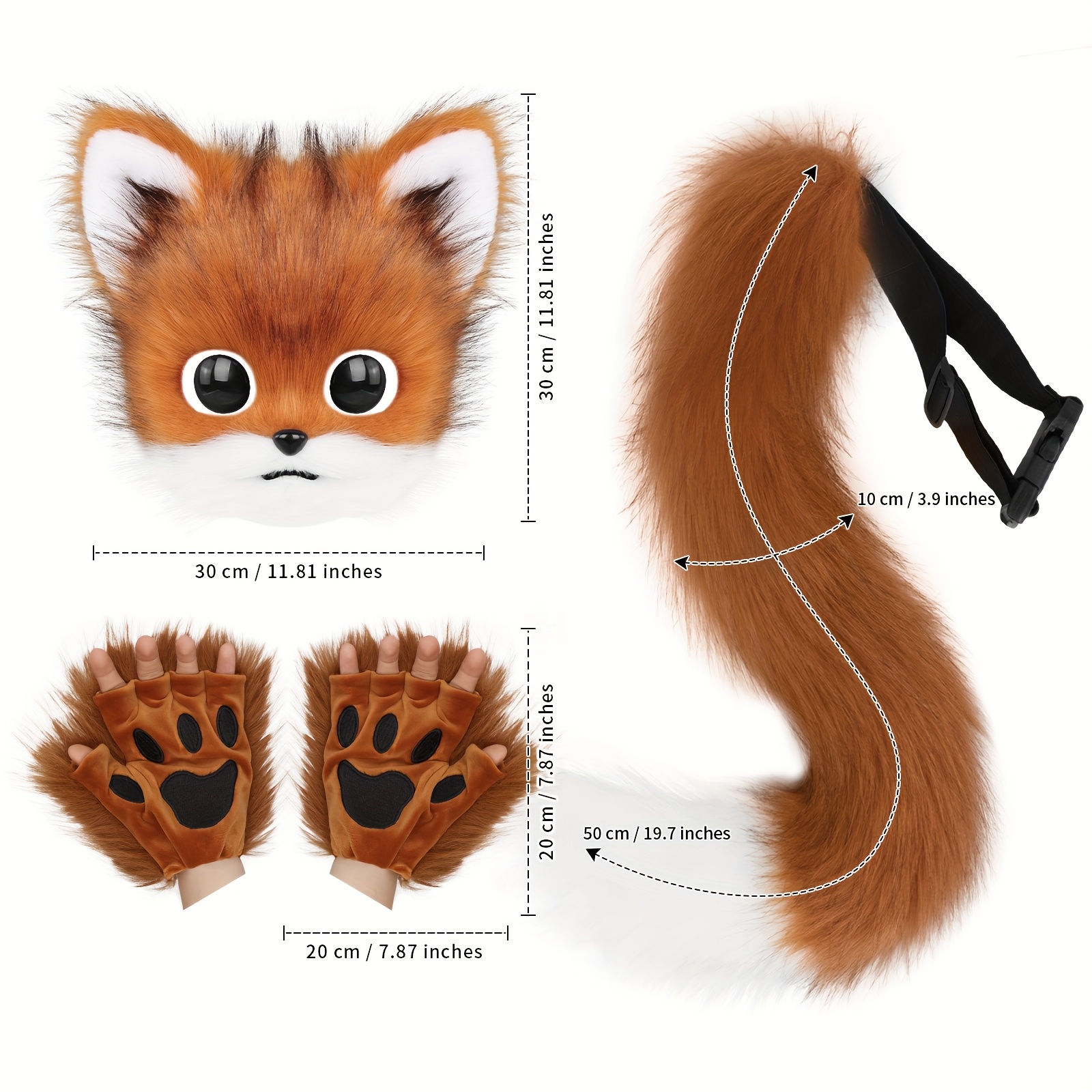 Die Handschuhe passen sich jeder Handform an und das Stirnband sitzt sicher. Der klingende Glöckchen-Kragen macht dich zum Mittelpunkt jeder Feier und die pelzige Textur sieht täuschend echt aus.