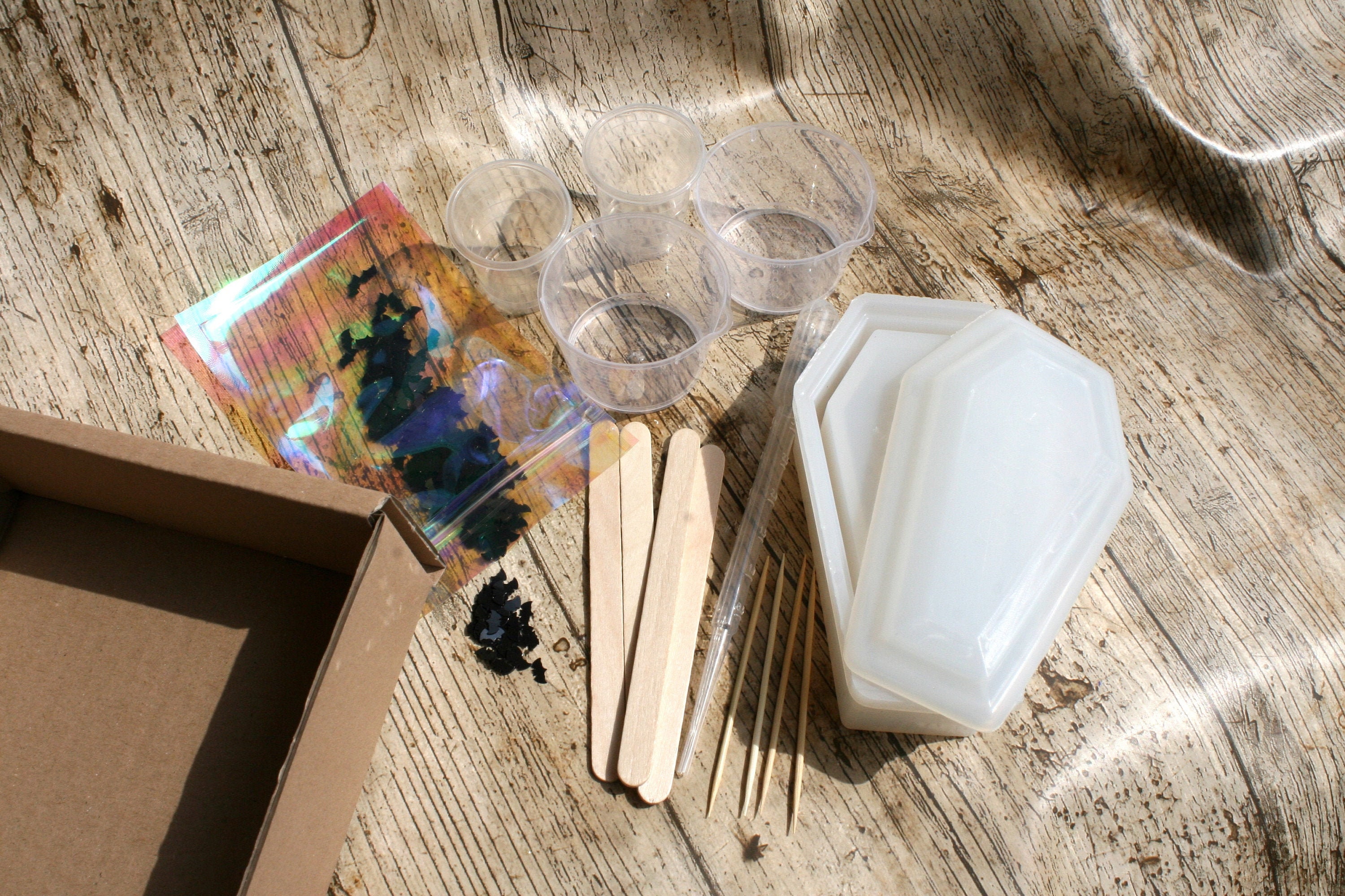 Hey DIY-Fan! Diese Halloween Silikonformen im Sarg-Design sind perfekt für deine gruselige Deko! Mit 3 verschiedenen Deckelformen und einer Basisbox kannst du kreative Kunstwerke aus Epoxidharz, Gips oder Wachs gießen. Die Maße sind perfekt: Unterteil 11,6x7x2,7cm und Deckel 11x6,4x0,6cm. Die filigranen Motive mit Geistern, Fledermäusen und Spinnennetzen projizieren tolle Lichtmuster, wenn du Teelichter oder LED-Lichter reinlegst! Aus lebensmittelechtem, flexiblem Silikon - formstabil und wiederverwendbar. Die glatte Innenfläche macht das Entformen super einfach, ganz ohne Trennmittel. Spülmaschinenfest und leicht zu reinigen - einfach mit warmem Wasser abspülen. Perfekt für Kerzenhalter, Geschenkboxen oder Deko-Stücke. Ob mit Trockenblumen, Glitzer oder Pigmenten - deiner Kreativität sind keine Grenzen gesetzt! Einfach bestellen und gruselige Halloween-Stimmung zaubern!