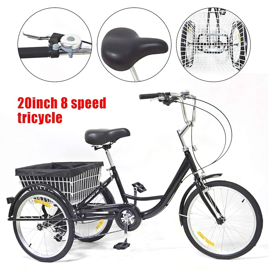 Fahrspaß für Erwachsene und Senioren! Dieses stabile Dreirad mit 20-Zoll-Rädern gibt dir Sicherheit auf drei Rädern. Mit 8 Gängen meisterst du jede Steigung. Der große Einkaufskorb (45x45x25 cm) trägt bis zu 20 kg - perfekt für den Wocheneinkauf. Bis zu 110 kg Gesamtgewicht sind kein Problem. Der Sitz ist höhenverstellbar von 73,5-92 cm, die Armlehnen von 96,5-104,5 cm. Aus hochwertigem Stahl und Aluminium, lackiert für lange Haltbarkeit. Mit Vorder- und Hinterradbremse für maximale Sicherheit. Einfache Montage mit bebilderter Anleitung. Perfekt für Stadt, Strand oder Radwege - immer stabil und komfortabel unterwegs!