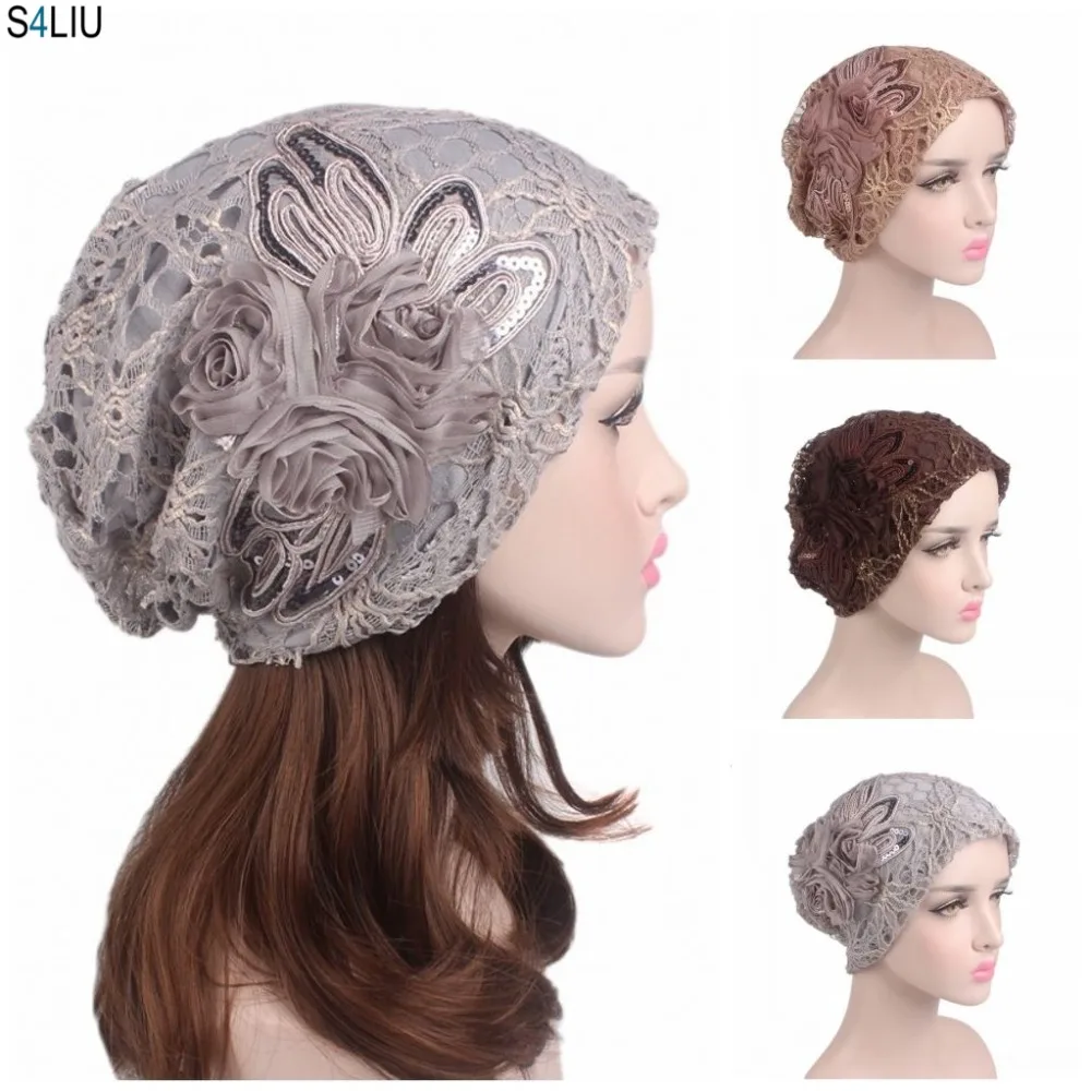 • Spitze Chemo Beanie Für Frauen - Baumwolle Turban Für Haarausfall