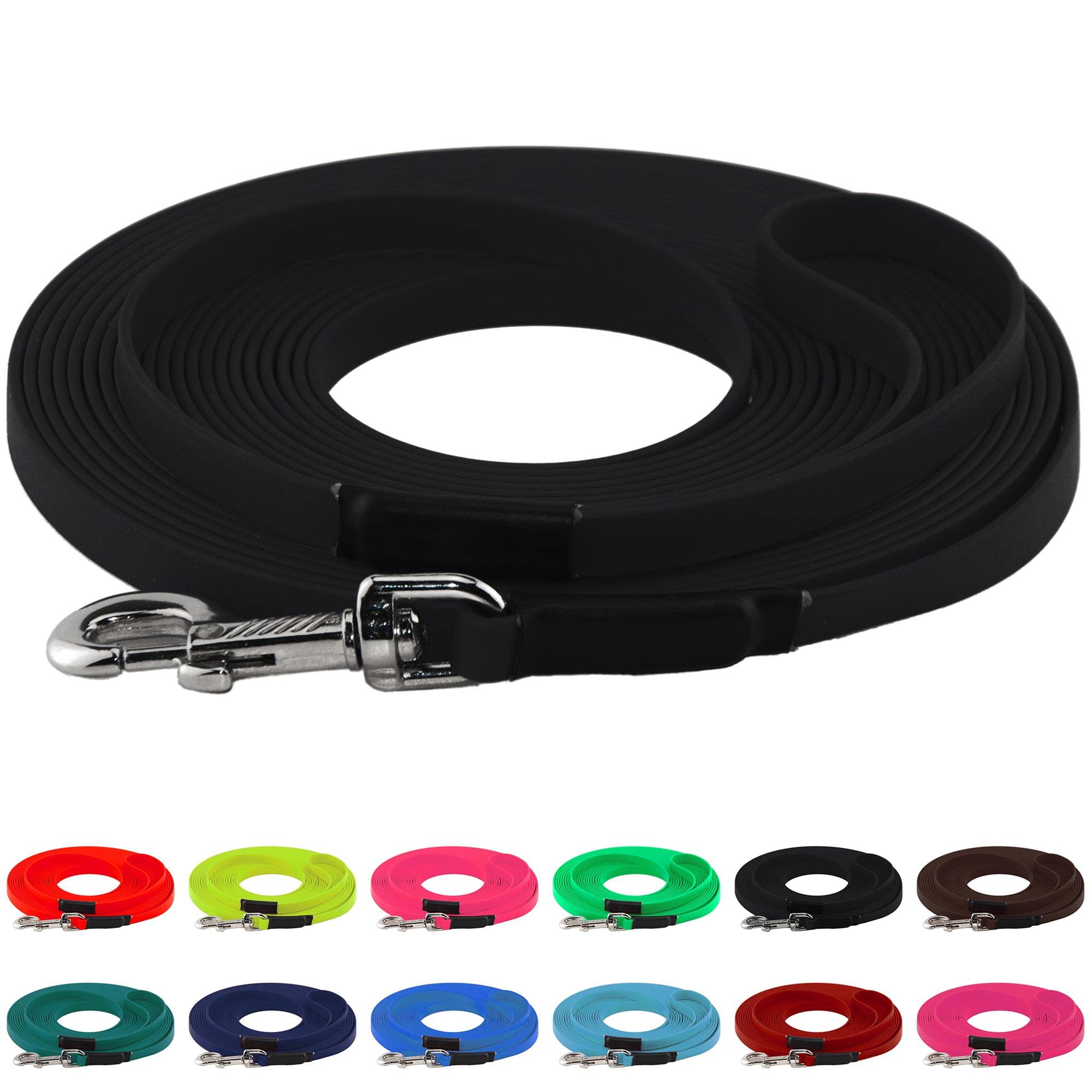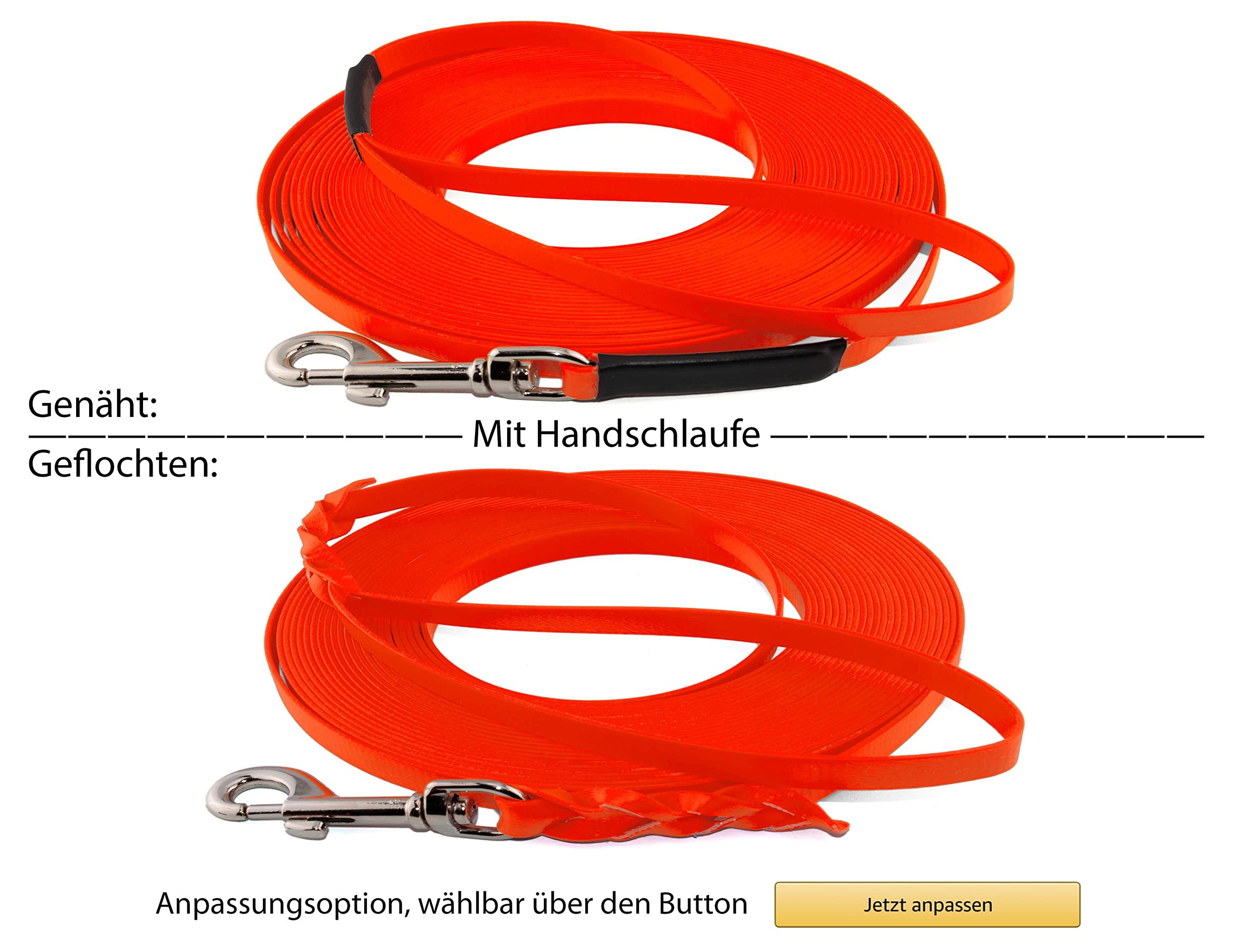Hey du Hundebesitzer! Diese Biothane-Schleppleine von LENNIE ist genau das Richtige für deinen großen Hund (25-35 kg). Das Material kommt aus den USA und ist absolut genial: wasserfest, pflegeleicht und mega robust!\\n\\nDie Leine ist 16 mm breit und gibt's in verschiedenen Längen: 3m, 5m, 10m oder 20m - je nachdem, wie viel Freiheit dein Hund braucht. Du kannst wählen zwischen mit oder ohne Handschlaufe, und es gibt verschiedene Karabiner-Optionen.\\n\\nDas Besondere: LENNIE fertigt jede Leine in Deutschland in Handarbeit an! Die Nähte sind mit Schrumpfschlauch geschützt und die Verbindungen sind so gemacht, dass die maximale Reißfestigkeit erhalten bleibt. Keine billigen genieteten oder geschraubten Verbindungen, die die Sicherheit gefährden!\\n\\nWarum Biothane so toll ist:\\n- Wird nicht nass - trocknet super schnell\\n- Keine fauligen Gerüche oder Schimmel\\n- Extrem reißfest und langlebig\\n- Dehnt sich praktisch nicht\\n- Funktioniert bei Hitze und Kälte gleich gut\\n- Einfach mit Wasser zu reinigen\\n\\nEgal ob fürs Training, Spaziergänge oder Ausflüge - diese Schleppleine gibt deinem Hund die Freiheit, die er braucht, während du die Kontrolle behältst. Und weil sie so pflegeleicht ist, macht ihr auch bei Matschwetter keine Kompromisse!\\n\\nÜber 11 Jahre Erfahrung stecken in diesen Leinen - da kannst du dir sicher sein, dass du Qualität bekommst, die hält. Dein Hund wird's lieben!