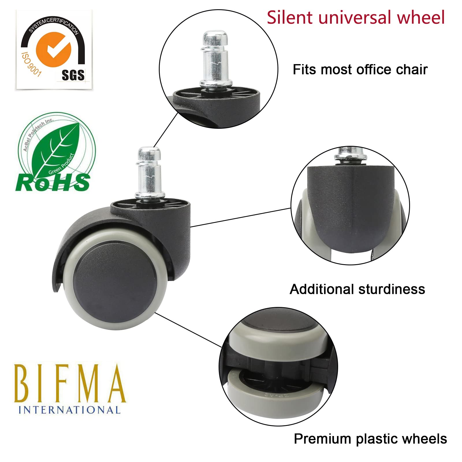 Schluss mit kratzenden und lauten Rollen! Diese 5 PU-Rollen sind perfekt für alle Büro- und Gamingstühle. Mit 11mm Aufnahme passen sie auf die meisten Stuhlbeine. Aus weichem PU-Material - schonen deine Böden und hinterlassen keine Kratzer. Das Doppelrad-Design sorgt für leises Rollen und bleibt nicht an Haaren oder Krümeln hängen. Einfache Installation: Alte Rollen einfach rausziehen, neue reinstecken - fertig! In grau-schwarzer Farbe, die zu den meisten Stühlen passt. Mit RoHS-Zertifikat und BIFMA-Prüfung für geprüfte Qualität. Perfekt für Teppich, Laminat, Parkett oder Fliesen. Mach deinen Stuhl wieder mobil und leise! Ideal wenn deine alten Rollen schwergängig geworden sind oder dein Boden Schutz braucht. 5 Stück im Set - genau richtig für einen kompletten Stuhl!