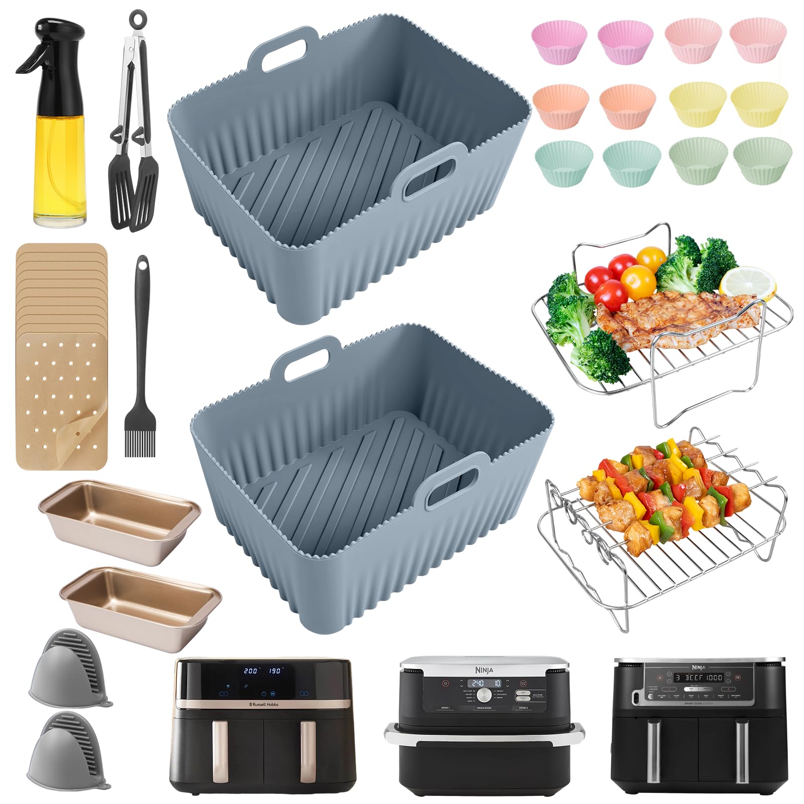 Wow, deine Ninja Heißluftfritteuse kann jetzt auch Waffeln backen! Mit diesen praktischen Silikonformen verwandelst du dein Gerät im Handumdrehen in eine Waffelmaschine. Perfekt für knusprige belgische Waffeln zum Frühstück oder herzhafte Varianten. Die Formen sind hitzebeständig und haben eine super Antihaft-Beschichtung - da löst sich nichts fest. Einfach reinigen und platzsparend stapeln. Passt perfekt für Ninja AF300, AF400, AF451, SL400 und AF500 Modelle. Hol dir das Set und entdecke eine ganz neue Seite deiner Heißluftfritteuse! Perfekt für Waffel-Liebhaber und alle, die ihr Gerät maximal ausnutzen wollen.
