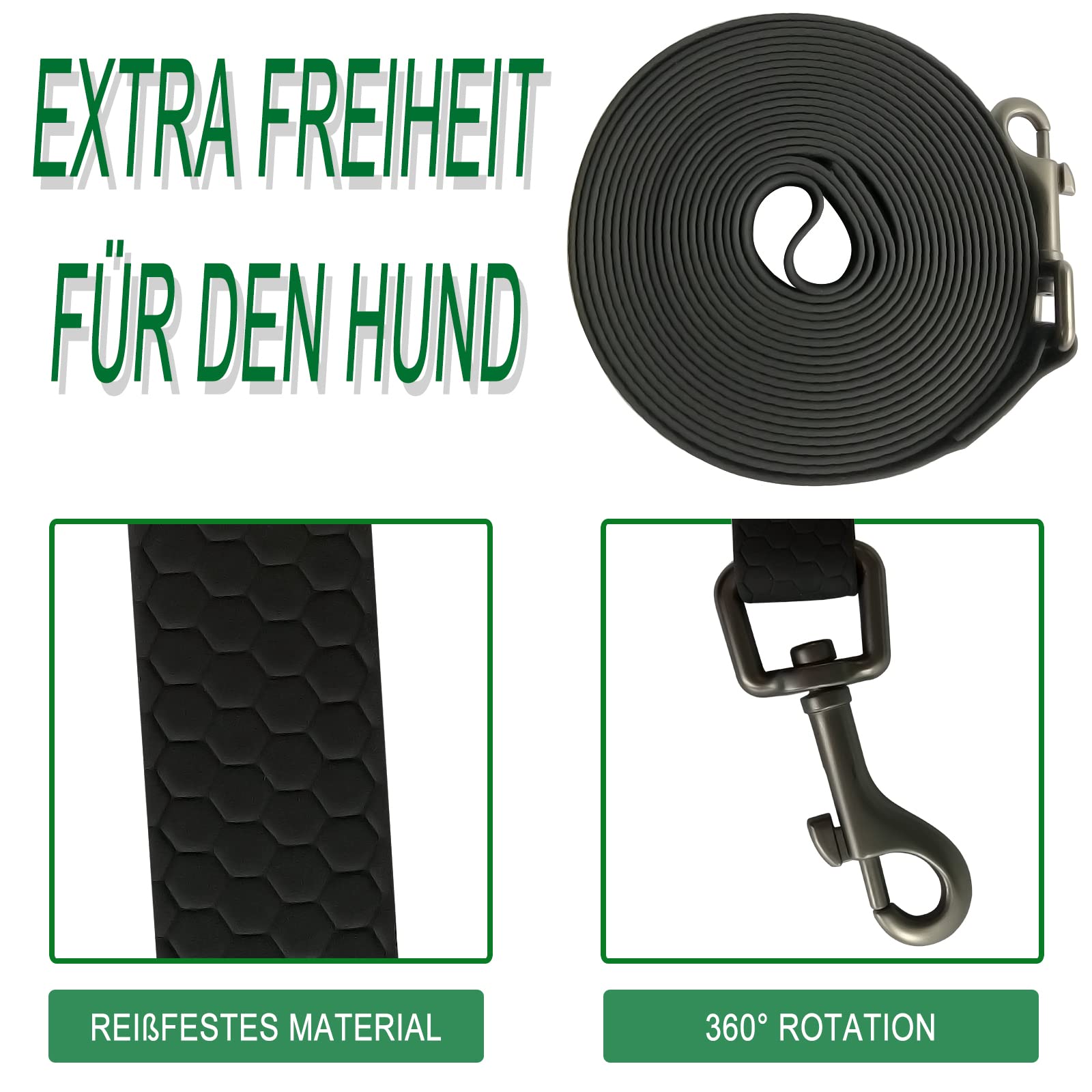 Perfekt für Hunde die mal mehr Freiheit brauchen! Diese Schleppleine ist 5 Meter lang - dein Hund kann sich richtig austoben, aber du hast ihn trotzdem unter Kontrolle. Mit reflektierenden Streifen - super wichtig bei Dämmerung oder im Wald. Der Griff ist gepolstert, tut nicht weh wenn der Hund mal zieht. Der Karabiner dreht sich 360 Grad - die Leine verdreht sich nicht und ist einfach anzuklippen. Aus robustem Nylon, hält auch nem großen starken Hund stand. Ideal für Training, Rückruf-Übungen oder einfach für nen entspannten Spaziergang wo der Hund mal schnüffeln kann. Ob im Park, am See oder im Wald - damit macht Gassi gehen noch mehr Spaß! Leicht zu reinigen wenn's mal dreckig wird. Dein Hund wird die Extra-Freiheit lieben - und du die Kontrolle die du trotzdem hast!