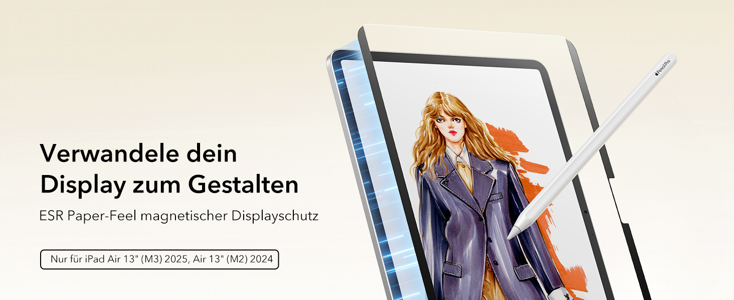 Echtes Papiergefühl für dein iPad Air 13! Dieser magnetische Displayschutz von BELLEMOND bringt das authentische Kent-Paper-Erlebnis auf dein Tablet. Perfekt für Künstler, Designer und alle, die gerne mit dem Apple Pencil arbeiten. Die magnetische Befestigung macht die Installation zum Kinderspiel - einfach anheften und sofort loslegen. Ohne Kleber, ohne Blasen, ohne Stress! Die matte Oberfläche reduziert lästige Reflexionen und die 3H-Härte schützt vor Kratzern. Besonders praktisch: Du kannst den Schutz einfach abnehmen und wieder anbringen - ideal wenn du zwischen Zeichnen und Medienkonsum wechseln möchtest. Inklusive praktischer Aufbewahrungshülle für unterwegs. Made in Japan - für Qualität, der du vertrauen kannst. Hol dir das Beste aus deinem iPad Air heraus!