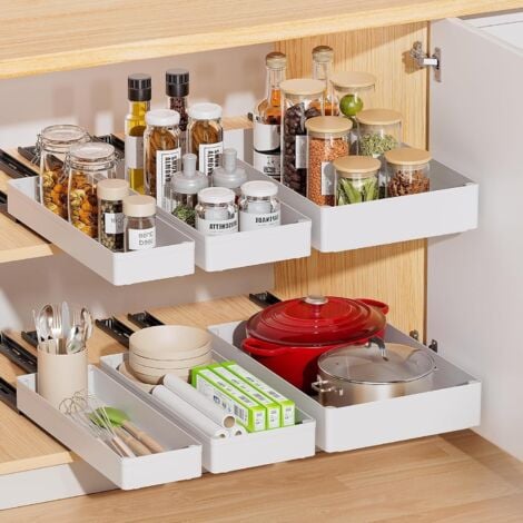 Endlich Ordnung in deinen Schränken! Dieses 3-teilige Set ausziehbarer Teleskopschubladen verwandelt chaotische Schränke in organisierte Paradiese. Drei verschiedene Größen (39x13cm, 40x18cm, 41x27cm) passen sich flexibel deinen Schrankmaßen an. Aus stabilem ABS-Kunststoff und bis zu 71cm ausziehbar - so erreichst du auch die hintersten Ecken mühelos! Die Installation ist super einfach: Entweder mit dem starken Nano-Kleber (kein Bohren nötig!) oder mit den mitgelieferten Halterungen. Perfekt für Küchenschränke, Vorratsschränke oder Badezimmer - ob für Gläser, Gewürze, Reinigungsmittel oder Kochutensilien. Getestet für über 10.000 Öffnungszyklen - das bedeutet jahrelange zuverlässige Nutzung! Wichtig: Misst vor dem Kauf eure Schrankmaße - die Schubladen passen nicht in Schränke mit Rahmen.