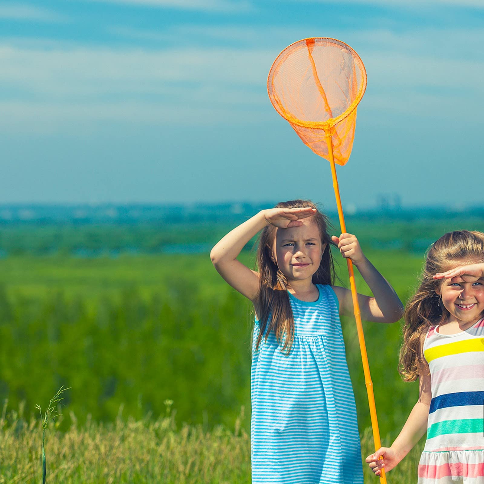 Ab nach draußen zum Entdecken! Dieses super coole 4-teilige Schmetterlingsnetz-Set macht jeden Ausflug zum Abenteuer. Im Set sind 2 Teleskopnetze in Rot und Grün plus 2 faltbare Eimer enthalten - alles was kleine Naturforscher brauchen! Die Netze haben eine Tiefe von 20 cm (8 Zoll), damit die gefangenen Tiere nicht so leicht entkommen können. Der Teleskopgriff lässt sich auf bis zu 86,4 cm ausziehen - perfekt um auch schwer erreichbare Stellen zu erreichen. Der Metallstab ist robust und langlebig, der Griff extra für kleine Hände designed. Das Nylonnetz ist hochfest und verletzt die Tiere nicht. Einfach zusammenschieben und schon passt alles in den Rucksack! Perfekt fürs Fangen von Schmetterlingen, kleinen Fischen, Krabben oder zum Beobachten von Insekten. Ob im Garten, am Teich, Strand oder beim Wandern - hier kommt garantiert keine Langeweile auf! Sicher für Kinder und ein Riesenspaß für die ganze Familie. Mach deinen Kindern eine Freude und schenk ihnen die Welt der Natur!