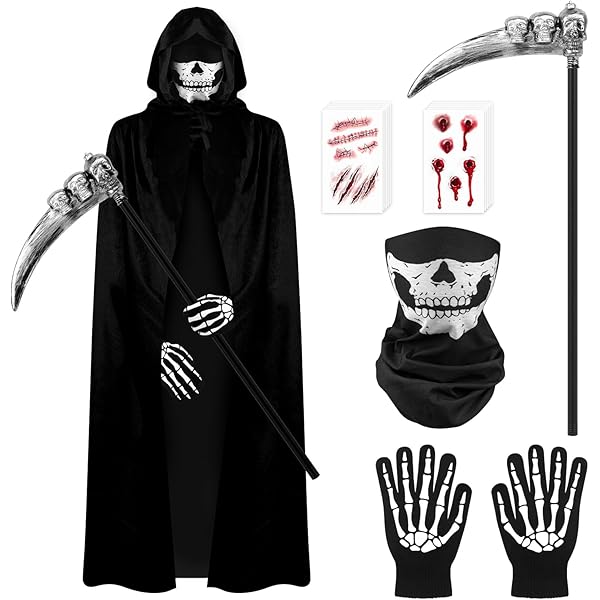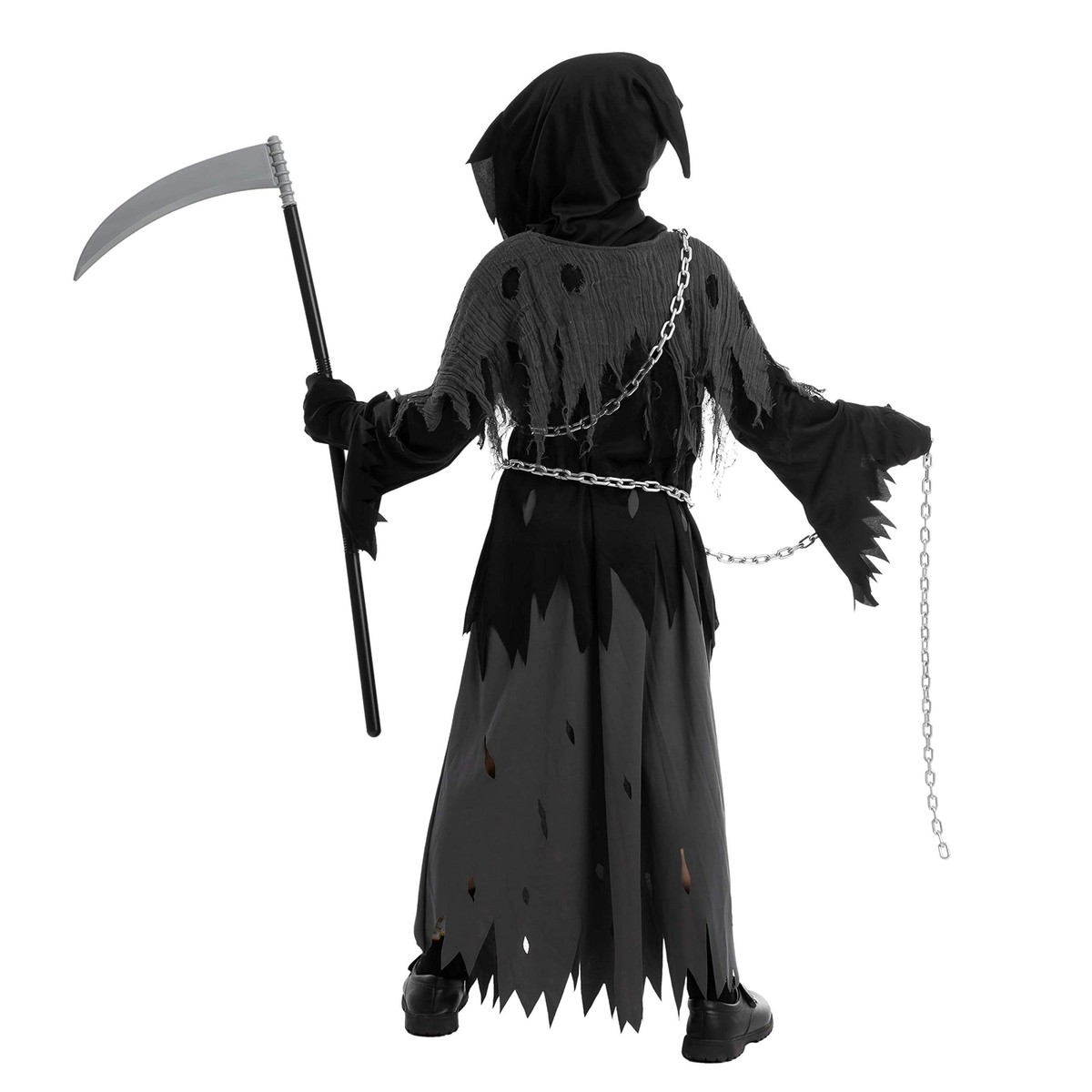 Boo! Macht richtig was her - dieses gruselige Sensenmann-Kostüm für Kinder! Komplett mit Taillenkette, Handschuhen, Kapuze mit Umhang und der coolen leuchtenden Brise. Aus 100% Polyester und super langlebig. Perfekt für Halloween, wenn's ums 'Süßes oder Saures' geht, oder für jede andere gruselige Party. Es gibt verschiedene Größen: Small (5-7 Jahre), Medium (8-10 Jahre), Large (10-12 Jahre) und X-Large (12-14 Jahre). Einfach anziehen und schon bist du der gruseligste Sensenmann der Stadt! Nur kalte Handwäsche und an der Luft trocknen - dann hält das Kostüm auch lange.
