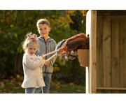 Wow, was für ein cooles Set für alle kleinen Pferdefans! Dieses Hobby Horsing Turnier-Set von Betzold bringt richtig viel Spaß ins Kinderzimmer. Im Set sind 2 richtig süße Steckenpferde enthalten, mit denen die Kids spannende Reitwettkämpfe veranstalten können. Dazu gibt es 4 flexible Hindernisse, die von 15 cm bis 37 cm höhenverstellbar sind, plus einen Steilsprung von 20 cm bis 60 cm. Das Beste: Die Sicherheit steht an erster Stelle - wenn die Stange berührt wird, fällt sie einfach aus dem Halter, damit nichts passiert. Zur Belohnung warten glänzende Siegerschleifen im Vintage-Look auf die kleinen Reiter. Das Set fördert nicht nur die Bewegung und Geschicklichkeit, sondern auch die Fantasie beim Rollenspiel. Perfekt für Geburtstage oder einfach so als Überraschung für pferdebegeisterte Kinder. Achtung: Enthält kleine Teile, daher nicht für Kinder unter 3 Jahren geeignet und der Aufbau sollte von Erwachsenen durchgeführt werden. Einfach aufbauen und losreiten!