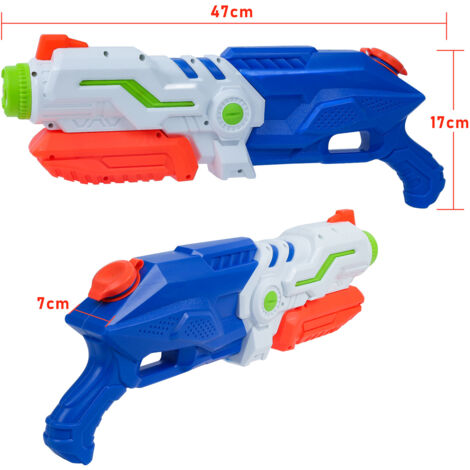 Sommer, Sonne, Wasserschlacht! Mit diesen zwei coolen Wasserpistolen wird jeder Tag zum Abenteuer. Die farbenfrohen Spritzpistolen aus robustem ABS-Kunststoff sind perfekt für kleine Hände und halten so einiges aus.