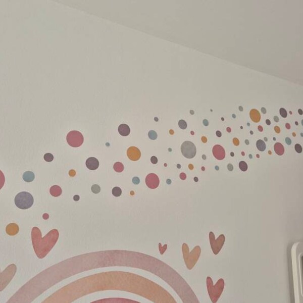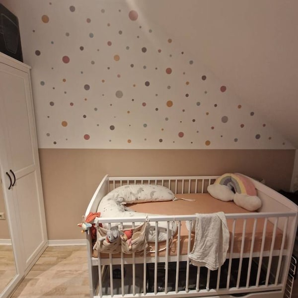 Die Punkte haben Durchmesser von 2,9cm bis 8,6cm - perfekt für tolle Muster und Bilder an der Wand. Einfach abziehen und an die gewünschte Stelle kleben. Gemeinsam mit deinem Kind entstehen so die schönsten Kunstwerke!