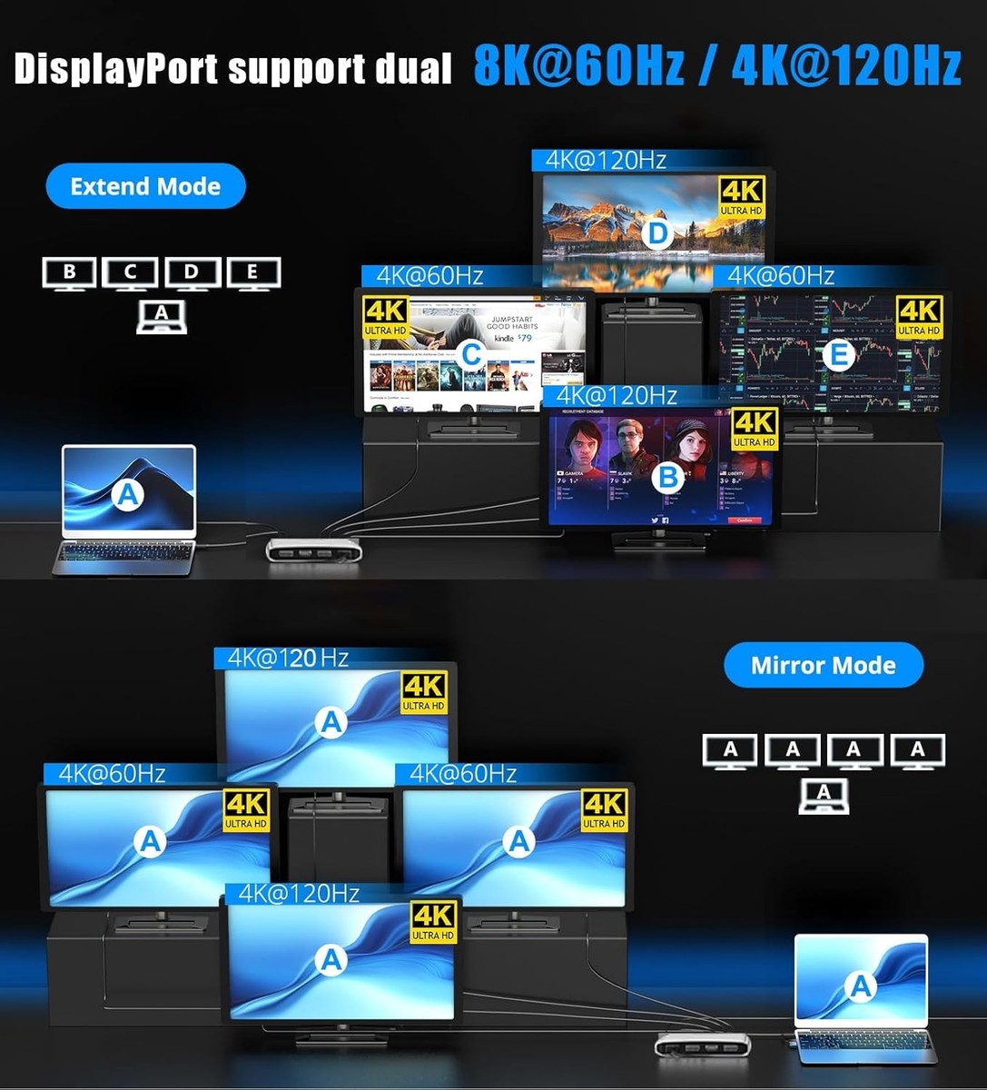 Endlich mehr Platz auf dem Bildschirm! Dieser WAVLINK Adapter macht aus deinem Mac ein Multimonitor-Powerhouse. Bis zu 4 Monitore gleichzeitig - zwei in 4K UHD und zwei in Full HD. Perfekt für Börsenhändler, Programmierer oder alle, die viel Platz brauchen. Mit USB-C und USB-A Anschlüssen, also für fast alle Geräte geeignet. Aber Achtung: Treiber muss man installieren und Stromanschluss ist nötig. Kompatibel mit Windows, Mac OS ab 13.x, Android und mehr. Einfach anschließen, Treiber laden und in die produktive Welt der Mehrfachmonitore eintauchen!