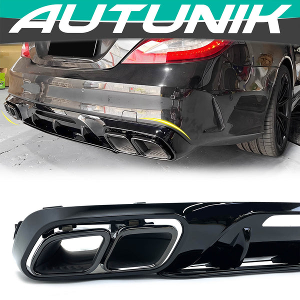 Mach deinen Mercedes CLS noch sportlicher! Dieser GT63-style Heckdiffusor passt perfekt auf die AMG Line Stoßstange des Mercedes C218 (CLS350, CLS400, CLS500, CLS550) von 2015-2018. Aus hochwertigem PP-Material mit Metall-Elementen - richtig stabil und langlebig. Die markanten Stege geben deinem Fahrzeug einen ultra-sportlichen, kantigen Look der sofort auffällt. Einfach zu montieren und mit super Passgenauigkeit. Im Lieferumfang ist alles dabei was du brauchst: 1x Heckdiffusor, 1 Paar Auspuffblenden, 1 Paar Auspuff-Halterungen und 1 Paar Halterungen. Wichtig: Passt nur zur AMG Line Ausstattung, nicht zur Serienausstattung, Style oder Progressive mit Anhängerkupplung. Und keine Sorge - die Nebelschlussleuchte ist nicht im Lieferumfang enthalten, die behältst du ja sowieso. Verleihe deinem CLS den ultimativen Sport-Look und lass die Köpfe sich drehen!