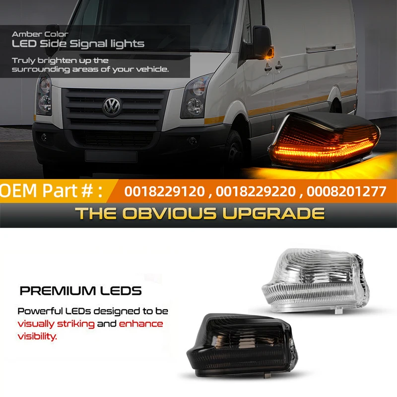 Modernisiere deinen Sprinter oder Crafter mit diesen hochwertigen LED Spiegelblinkern! Mit 39 starken 2835 SMD LEDs sind sie ganze 5x heller als die originalen Halogen-Blinker. Das integrierte Canbus-System macht sie 100% fehlerfrei - keine Warnleuchten im Armaturenbrett mehr. Einfach Plug & Play montieren, keine Polarität beachten. IP67 wasserdicht für jedes Wetter und auch bei der Autowäsche absolut sicher. Passend für Mercedes Sprinter W906 2006-2021 und VW Crafter 2006-2021. Im Set sind 2 Blinker enthalten. Ersetzt die OEM Nummern 0018229120, 0018229220. Einfach den alten Blinker raus, neuen rein - in wenigen Minuten ist der Upgrade erledigt. Sieht nicht nur besser aus, sondern erhöht auch die Sicherheit durch die höhere Leuchtkraft!