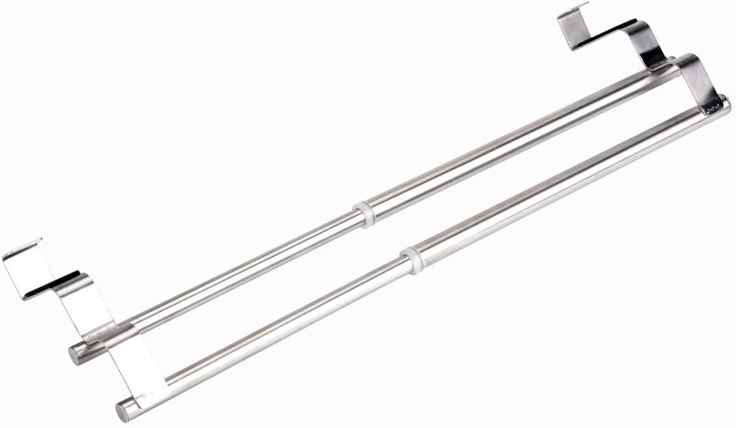 Mega praktisch dieser Handtuchhalter! Einfach über die Schranktür stecken - kein Bohren nötig! Passt für Türen bis 2 cm Stärke. Aus Edelstahl mit schrankschonender Gummibeschichtung. Verstellbar von 25 bis 40 cm Breite. Perfekt für Küche, Bad oder Hauswirtschaftsraum. Hält zwei Handtücher sicher fest. Maße: 25-40 x 13,5 x 10,5 cm. Endlich keine nassen Handtücher mehr auf der Arbeitsplatte! Einfach montiert in Sekunden. Sieht auch noch gut aus mit dem gebürsteten Edelstahl-Design.