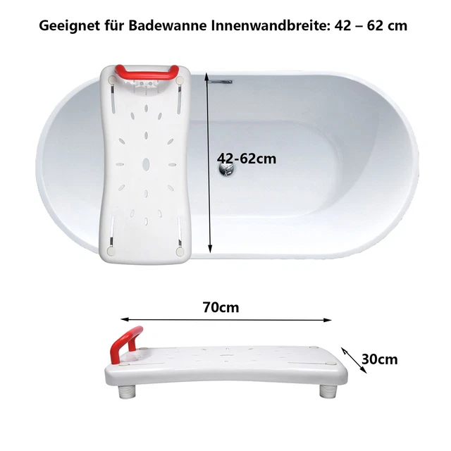 Sicheres Baden für Senioren und Menschen mit Mobilitätseinschränkungen! Dieser Badewannensitz mit Rückenlehne gibt Sicherheit und Komfort in der Wanne. Mit verstellbarer Breite von 77-87cm passt er in die meisten Badewannen. Die rutschfeste Oberfläche und Gummifüße verhindern gefährliches Wegrutschen. Hält bis zu 136kg aus und ist super einfach ohne Werkzeug montiert - in nur 2 Minuten aufgebaut! Mit Abflusslöchern und ergonomischem Design. Perfekt für Senioren, Schwangere oder während der Reha. Endlich wieder sorgenfrei baden können!