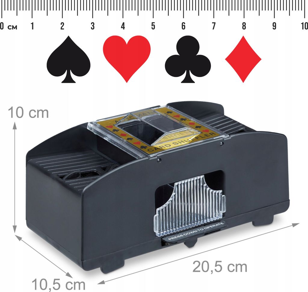 Schluss mit mühsamem Kartenmischen! Dieser automatische Kartenmischer erledigt die Arbeit für dich - einfach Knopf drücken und schon werden 1-2 Kartendecks perfekt gemischt. Kompatibel mit UNO, Poker, Skyjo, Skip BO und vielen anderen Kartenspielen. Super praktisch für Spieleabende mit Freunden oder Familie - kein Streit mehr über unfaire Mischungen! Das schwarze Design ist kompakt und sieht modern aus. Einfach die Karten in die Einschubfächer stecken, Start drücken und in Sekunden hast du perfekt gemischte Karten. Macht jeden Spieleabend noch entspannter!