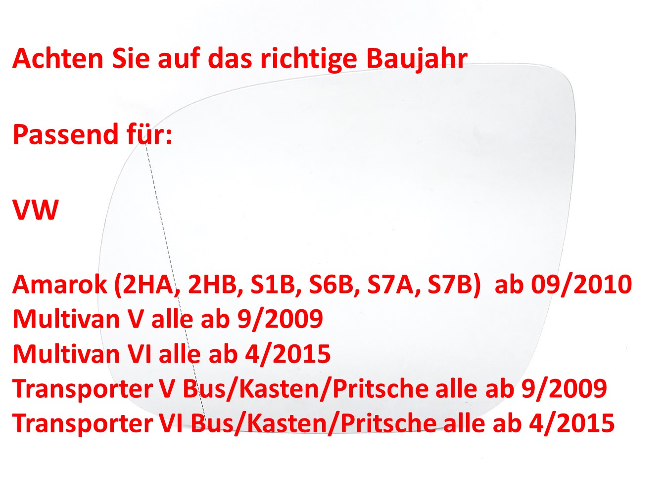 Kaputtes Spiegelglas im Außenspiegel? Dieses Ersatzglas von HZ-DESIGN macht deinen VW T5 Transporter/Bus (Baujahr 04/2003-09/2009) oder Caddy III Kasten/Kombi (03/2004-05/2015) wieder komplett! Das linke Spiegelglas für die Fahrerseite ist asphärisch geformt - das bedeutet Weitwinkel-Blick ohne lästige tote Winkel. Wichtig: Dieses Glas ist NICHT beheizbar! Bevor du bestellst, überprüfe unbedingt die Erstzulassung deines Fahrzeugs und vergleiche die OE-Nummern: 7H1857521, 7H1857521D, 7H1857521M. Achtung: Es handelt sich um ein kompatibles Ersatzteil, nicht um Originalware. Einfach das alte Glas vorsichtig entfernen und das neue einsetzen - schon hast du wieder perfekte Sicht und mehr Sicherheit im Straßenverkehr!