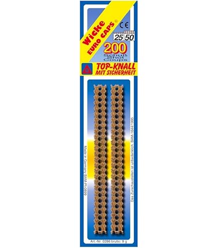 Schießspaß für kleine Cowboys! Dieses Set enthält 1000 Schuss Munition für Wicke Euro Caps Revolver - aufgeteilt in 3 praktische Blisterrollen à 100 Schuss. Dazu gibt's einen usy Block für noch mehr Spielspaß. Perfekt für Kindergeburtstage, Karneval oder Western-Partys. Einfach in die passenden Revolver laden und losknallen! Wichtig: Nur für Innenräume geeignet, nicht auf Menschen oder Tiere zielen. Made in Germany für qualitativ hochwertigen Spielspaß. Ab 3 Jahren empfohlen! Menge: 1000 Schuss • Format: 3x Blisterrollen • Inkl. usy Block • Für Wicke Revolver • Ab 3 Jahren • Made in Germany • Für Indoor • Western-Spaß • Einfache Handhabung • Knall-Effekt