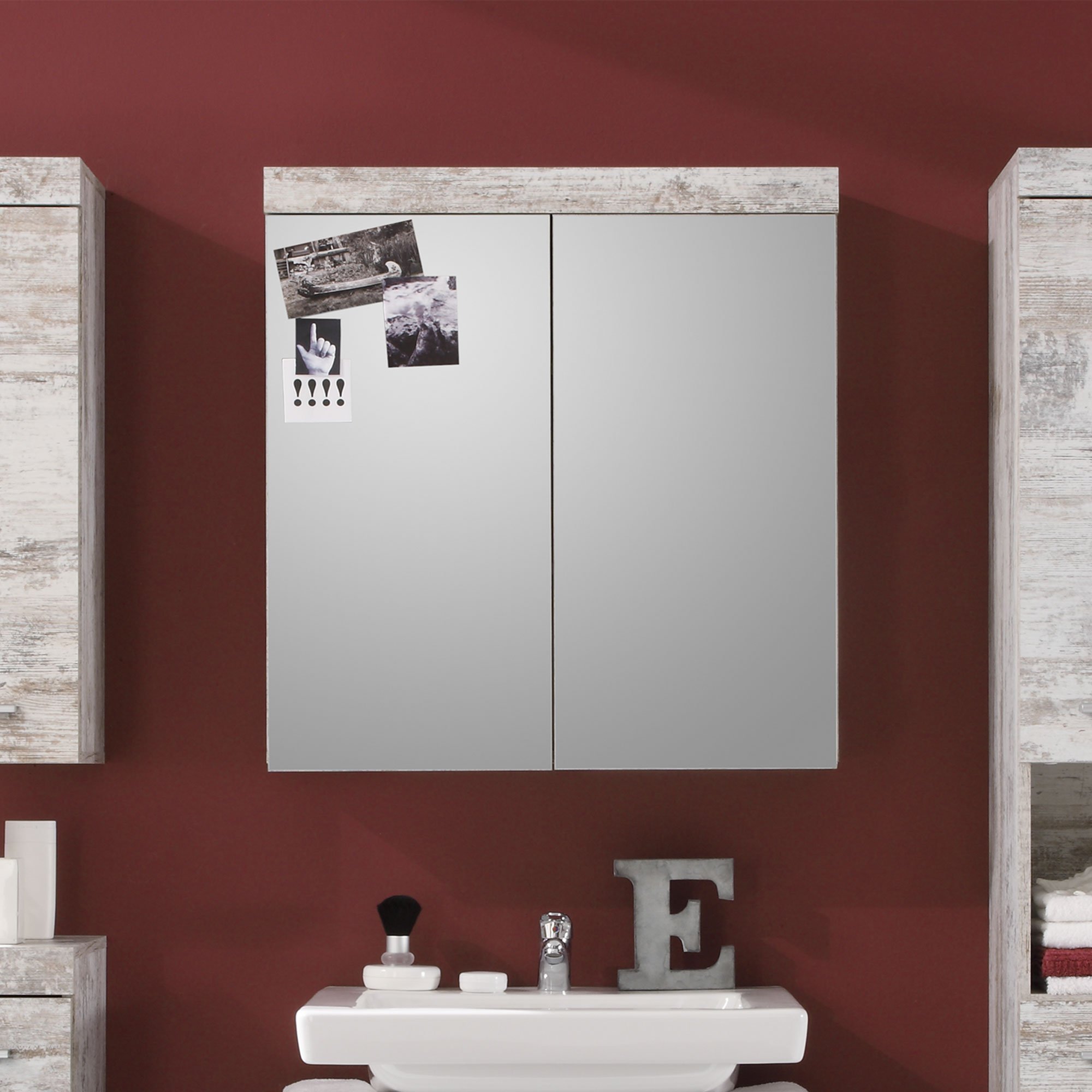 Stylish und praktisch zugleich! Der Cancun Spiegelschrank bringt modernes Flair in dein Badezimmer. Mit den Maßen 72x79x17cm ist er platzsparend aber bietet trotzdem reichlich Stauraum hinter den zwei Türen. Die Oberfläche in warmem Canyon Weiß Pine ist nicht nur hübsch anzusehen, sondern auch super pflegeleicht - einfach mit einem feuchten Tuch abwischen. Die zwei einstellbaren Einlegeböden inside geben dir Flexibilität bei der Aufbewahrung. Ob Zahnpasta, Cremes oder Rasierzubehör - alles findet seinen Platz. Das Beste: Der Aufbau ist dank klarer Anleitung wirklich einfach und du kannst den Schrank sofort nutzen. Hergestellt aus robustem Holzwerkstoff mit FSC-Zertifizierung für nachhaltige Waldwirtschaft. Perfekt für alle, die Ordnung und Style im Bad lieben!