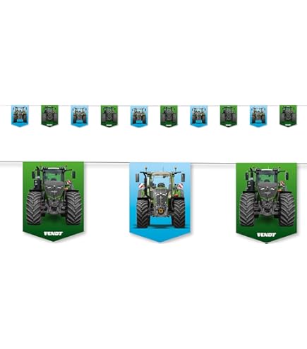 Traktor-Fans aufgepasst! Dieses 5-teilige Deckenhänger-Set mit FENDT Motiven ist perfekt für jede Bauernhof-Party. Enthält 1 'Happy Birthday' Schild und 4 runde Traktor-Motive - alle ca. 150cm lang. Aus festem Karton, doppelseitig bedruckt und komplett mit Befestigungsschnur. Made in Germany! Passt super zu den anderen Artikeln dieser Serie. Einfach aufhängen und sofort ist Party-Stimmung im Raum. Das ideale Geschenk für kleine Traktor-Liebhaber!