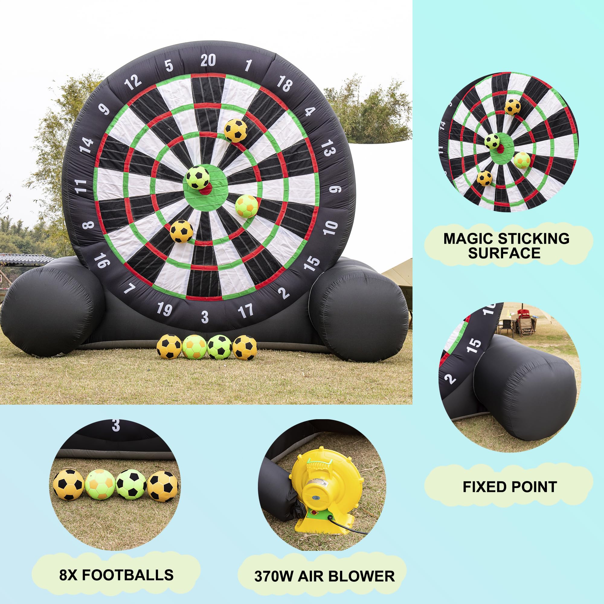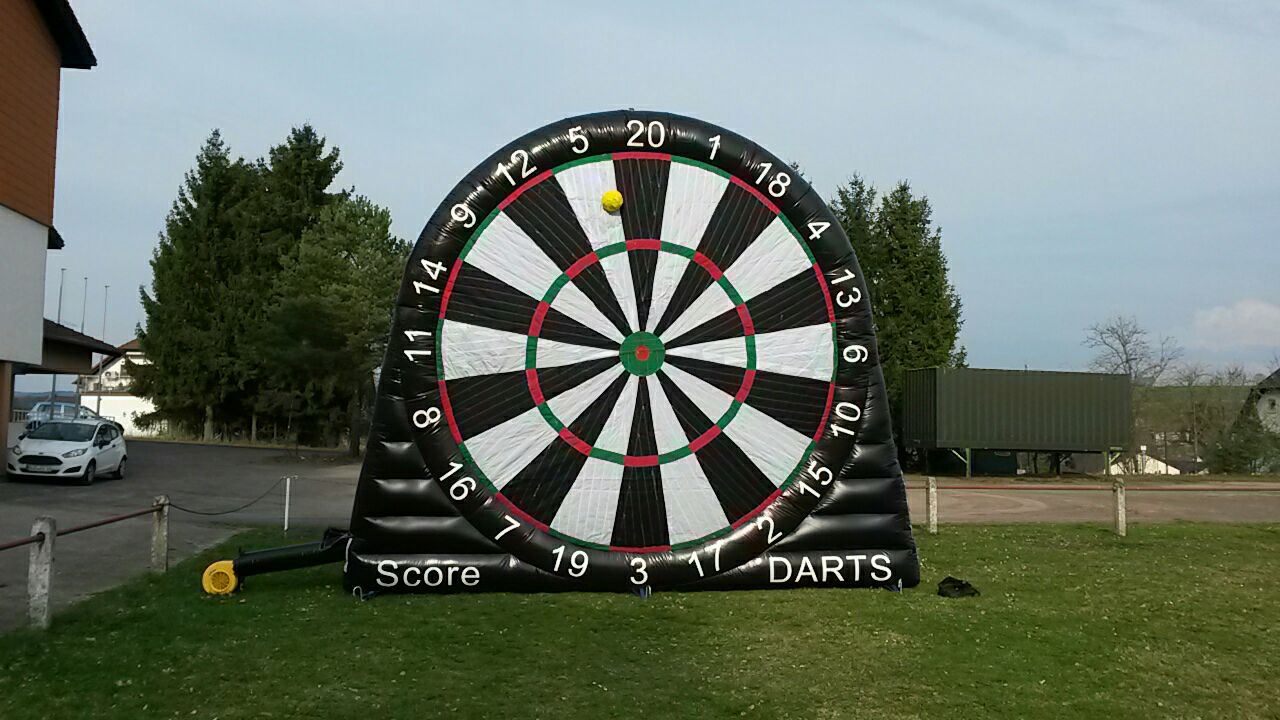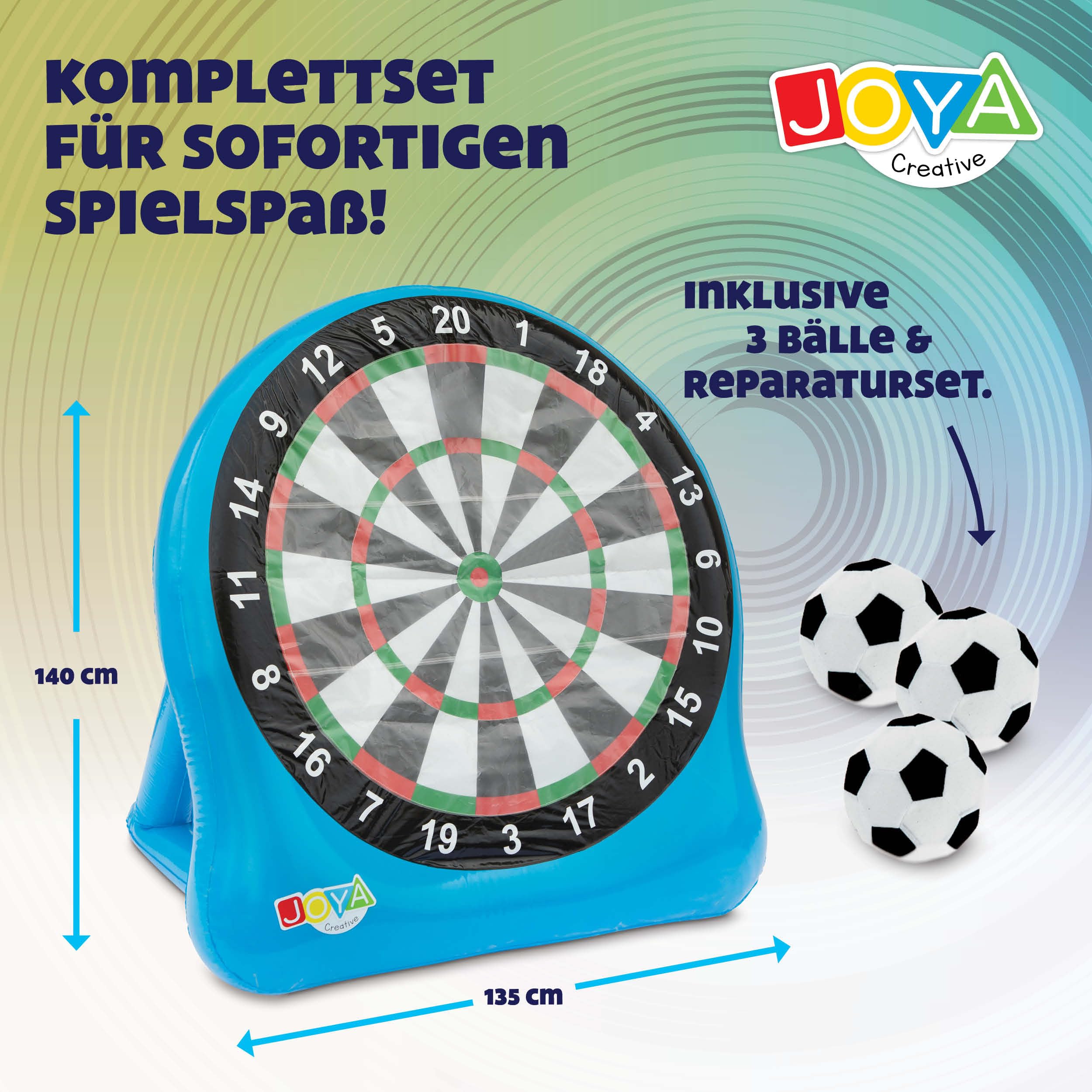 Das ist ja mal ne coole Idee! Dieses aufblasbare Fußball-Dart Spiel bringt Action in jedes Zuhause. Einfach aufblasen, aufhängen und schon kann der Spaß losgehen! Die weichen Klettbälle haften super an der Zielscheibe - perfekt für drinnen und draußen. Super für Kindergeburtstage, Familienfeiern oder einfach so zum Trainieren. Macht nicht nur irre Spaß, sondern verbessert auch noch die Koordination und Fußballskills. Die Bälle sind schön weich und sicher - da passiert nichts wenn mal einer daneben geht. Perfekt für Jungs und Mädchen ab 3 Jahren. Ist ganz leicht zu transportieren und passt zusammengefaltet in jede Tasche. Ob im Garten, im Wohnzimmer oder im Park - überall sorgt dieses Spiel für Stimmung! Einfach mal was Anderes als die üblichen Spiele - und die Kids sind total begeistert!