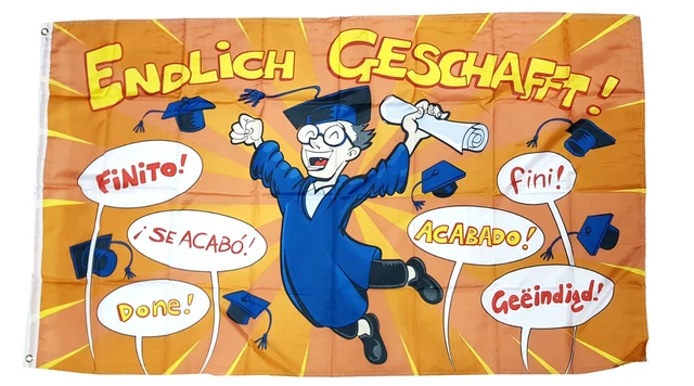Na, endlich soweit? Diese Fahne 'Endlich Rentnerin' ist das perfekte Geschenk für alle die in den Ruhestand starten! Mit 90x150 cm Größe ist sie schön groß und gut sichtbar. Aus 100% Polyester gemacht - wetterfest und langlebig. Auf der linken Seite sind 2 Ösen zum einfachen Aufhängen am Mast oder am Balkon. Super lustig für die Renten-Party oder als Dauer-Deko für den Garten. Die Aufschrift 'Endlich Rentnerin' bringt jeden zum Schmunzeln. Einfach ein muss für alle die ihre neu gewonnene Freiheit feiern wollen! Ob als Geschenk von Kollegen oder von der Familie - diese Fahne kommt immer gut an und ist ein toller Erinnerung an den ersten Tag im Ruhestand. Macht einfach gute Laune und ist qualitativ gut verarbeitet.