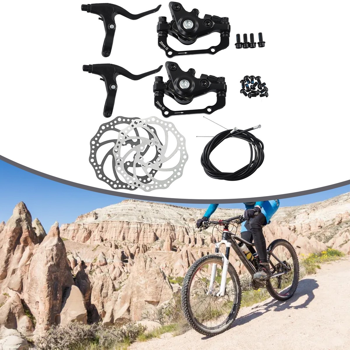 Willst du dein Mountainbike mit zuverlässigen Scheibenbremsen ausstatten? Dieses Trkimal Komplett-Set hat alles, was du brauchst! Enthalten sind sowohl Vorder- als auch Hinterradbremse mit 160mm Bremsscheiben, Bremsgriffe, Bremszüge und alle notwendigen Schrauben. Die Bremsen sind super sensitiv und leise, dabei hochtemperaturbeständig für anspruchsvolle Abfahrten. Das verstärkte Design sorgt für hohe Festigkeit und verhindert ein Brechen. Einfach zu installieren - die Bremshebel passen auf 22mm Lenker, und die Sattel sind für 160mm (hinten) bzw. 160/180mm (vorne) Scheiben ausgelegt. Perfekt für Mountainbiking, Radtouren oder Straßenrennen. Die scheibenfrei Konstruktion sorgt dafür, dass Wasser und Schmutz schnell ablaufen können. Mit diesem Set machst du dein Bike fit für jedes Terrain - sicher, zuverlässig und professionell!