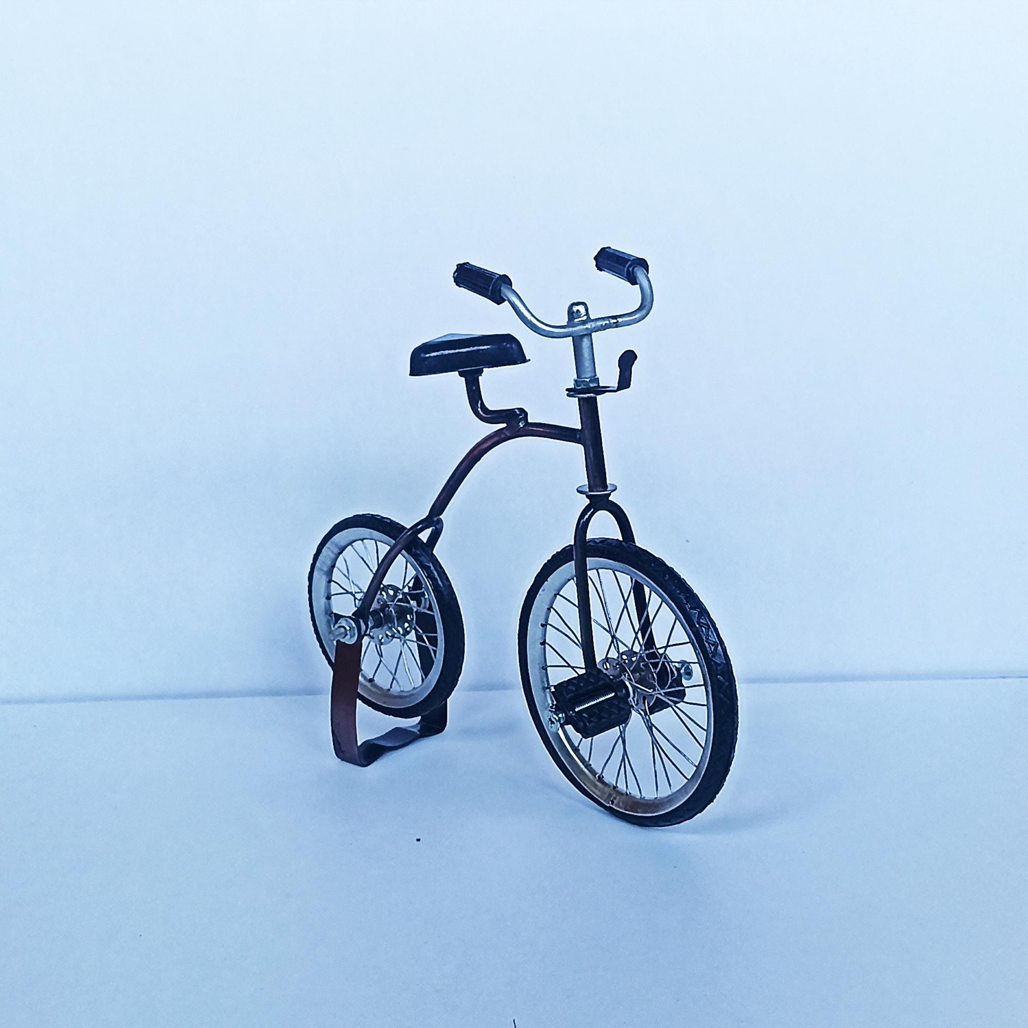 Wie niedlich ist denn dieses Miniatur-Fahrrad! Nur 9,5cm lang und 5,5cm hoch - perfekt für Deko-Zwecke. Aus robustem Metall gefertigt, mit liebevollen Details. Ideal für Wichtelhäuser, Miniaturlandschaften oder als Geschenk-Anhänger. Macht sich super in Vitrinen, auf Regalen oder als Tischdekoration. Fördert die Kreativität und bringt Charme in jedes Zimmer. Ein kleines Kunstwerk für große und kleine Sammler. Einfach hinstellen und sich an dem detailverliebten Miniatur-Fahrrad erfreuen!
