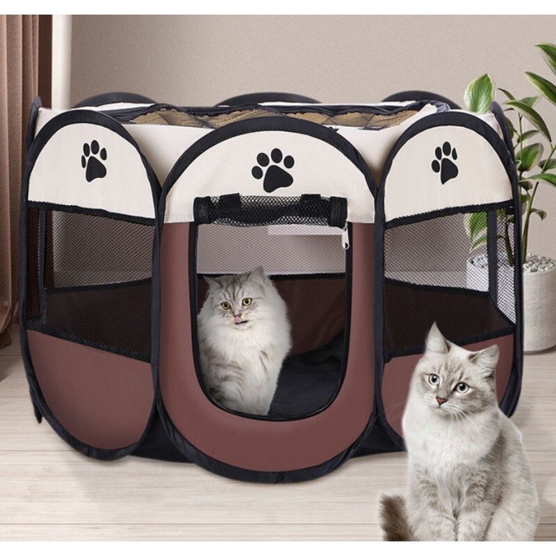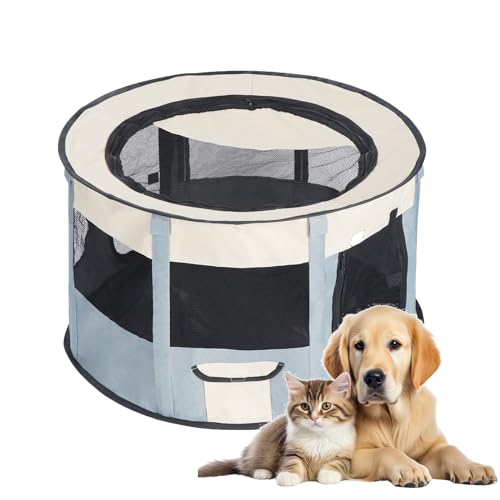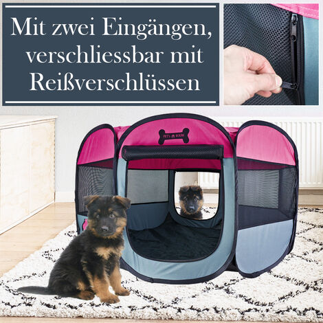 Der sichere Spielbereich für deine Lieblinge! Dieser faltbare Welpenauslauf bietet 74x74x43cm Platz zum Toben und Ausruhen. Perfekt für Welpen, kleine Hunde, Katzen, Kaninchen und andere Kleintiere. Aus robustem Oxford-Material - kratzfest, bissbeständig und windresistent. Das 360° Mesh-Design sorgt für frische Luft und gute Sicht. Besonders praktisch: Das abnehmbare Dach mit Reißverschluss für freie Interaktion. Einfach zusammenzuklappen und platzsparend zu verstauen - ideal für Wohnung, Balkon, Terrasse oder Reisen. Das wasserabweisende Material ist super leicht zu reinigen. Gib deinem Tier mehr Freiheit und Sicherheit!