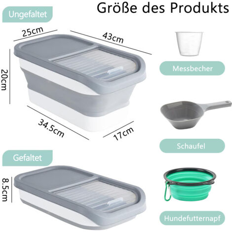 Ordnung und Frische für das Hundefutter! Dieser praktische faltbare Behälter ist der perfekte Aufbewahrungshelfer für Trockenfutter. Mit 5kg Fassungsvermögen (bis zu 15 Liter) hast du immer genug Vorrat parat, ohne dass Platz verschwendet wird.