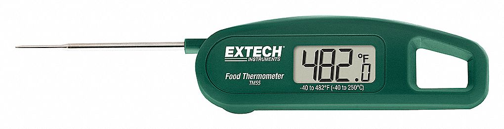 Boah, dieses Extech TM55 Thermometer ist ja mal richtig praktisch! Es ist faltbar und passt easy in jede Tasche - super für unterwegs oder in der Küche. Mit der 61mm Edelstahlsonde misst du superpräzise von -40 bis 250°C. Und das in weniger als 5 Sekunden! NSF-zertifiziert bedeutet: Perfekt geeignet für Flüssigkeiten, Teige und halbfeste Lebensmittel. Das große LCD-Display zeigt dir die Temperatur auf 0,1° genau an - mega genau also! Die Grundgenauigkeit liegt bei ±0,5°C, also wirklich verlässlich. Und das coole: Hinten ist ein Magnetstreifen, damit du es am Kühlschrank befestigen kannst. Immer griffbereit! Komplett mit CR2032-Batterie geliefert - einfach auspacken und loslegen. Ob für Fleisch, Backen oder Flüssigkeiten - dieses Thermometer liefert dir immer die richtige Temperatur. Einfach ausklappen, messen, zusammenklappen und verstauen. So praktisch war Temperaturmessen noch nie!