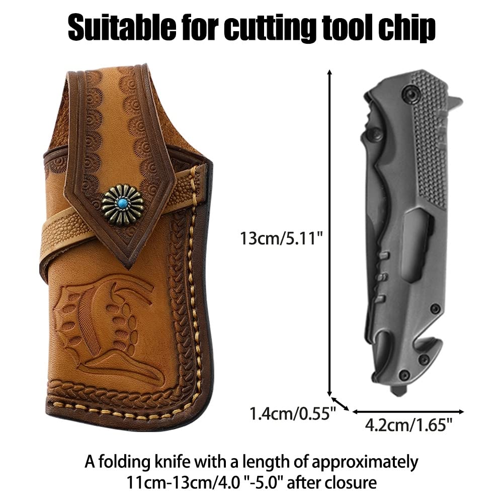 Brauchst du eine praktische Aufbewahrung für dein Klappmesser? Diese MiOYOOW Messerscheide aus Leder ist perfekt für unterwegs! In zwei Größen erhältlich: Groß für Messer bis 5 Zoll (13,4cm), klein für bis 4,7 Zoll (12cm). Mit Gürtelschlaufe auf der Rückseite - einfach am Gürtel befestigen und immer griffbereit! Das edle Design mit Messingknöpfen und geprägten Streifen sieht richtig hochwertig aus. Aus robustem Leder gefertigt - hält lange und rostet nicht. Perfekt für Camping, Jagd, Outdoor-Abenteuer oder einfach für den täglichen Gebrauch. Das Klappmesser ist sicher verstaut und immer schnell zur Hand. Mach dein Outdoor-Equipment komplett mit dieser praktischen Messerscheide!