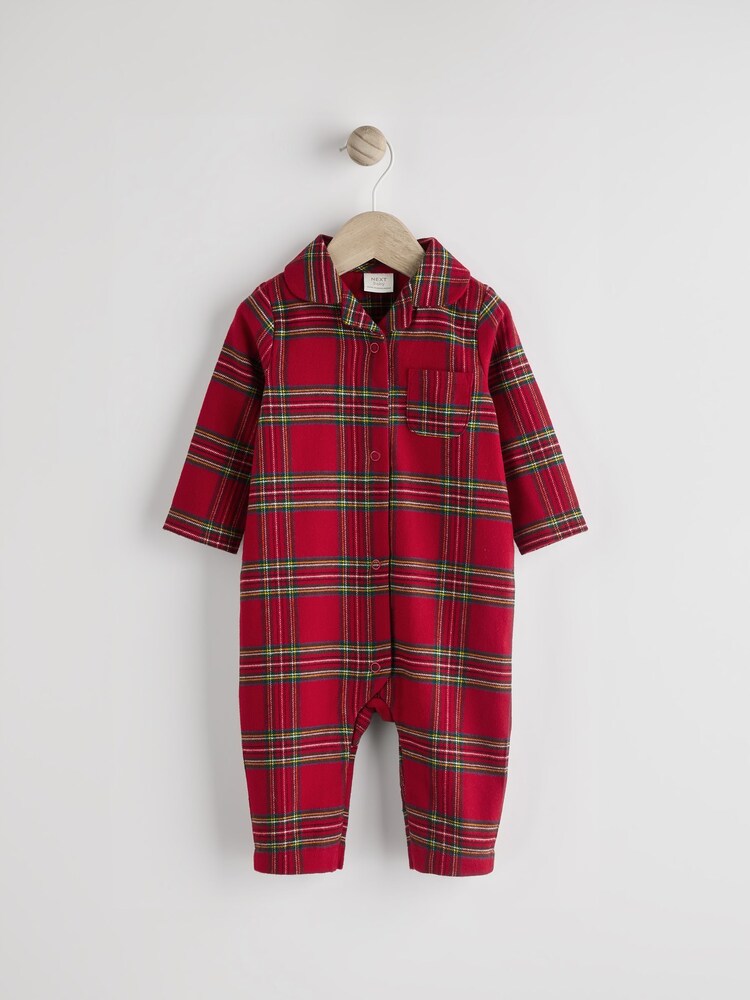 Weihnachts Pyjama Familie - Rotes Karomuster Baumwolle Grau