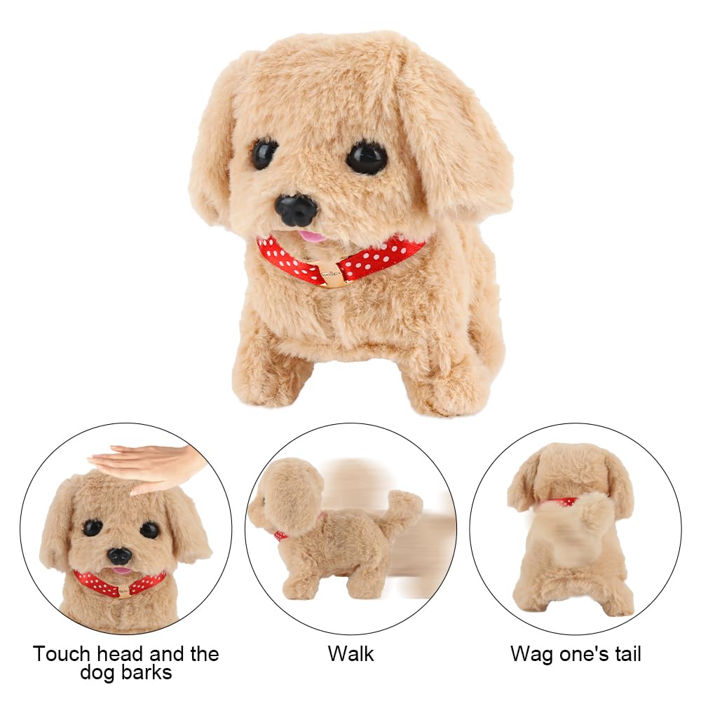 Wow, dieser elektrische Hund von Fancysky ist einfach niedlich! Das ist nicht nur ein Spielzeug, sondern ein richtiger kleiner Begleiter für Kinder ab 3 Jahren. Der Plüschhund reagiert auf Berührungen - wenn man ihn streichelt, gibt er realistische Geräusche von sich und bewegt sich sogar. Perfekt um Kindern spielerisch Verantwortung für Haustiere beizubringen. Mit dem kompletten Zubehör-Set inklusive Transportbox, Knochen, Kamm und Pflegeartikeln können Kinder stundenlang Rollenspiele spielen. Der Hund läuft übrigens wie ein richtiges Tier und wedelt mit dem Schwanz, was krabbelnde Kinder zum Mitlaufen animiert. Das weiche Fell ist hautfreundlich und die Verarbeitung mit verstärkten Nähten hält auch wilderes Spielen aus. Mit den enthaltenen Batterien hat man lange Spielzeit. Super als Geschenk zu Geburtstagen oder Weihnachten - da sind Jungs und Mädchen gleichermaßen begeistert! Maße: ca. 25x15cm, Material: Plüsch und Kunststoff, Farbe: Braun/Weiß. Achtung: Für Kinder unter 3 Jahren nicht geeignet wegen verschluckbarer Kleinteile.