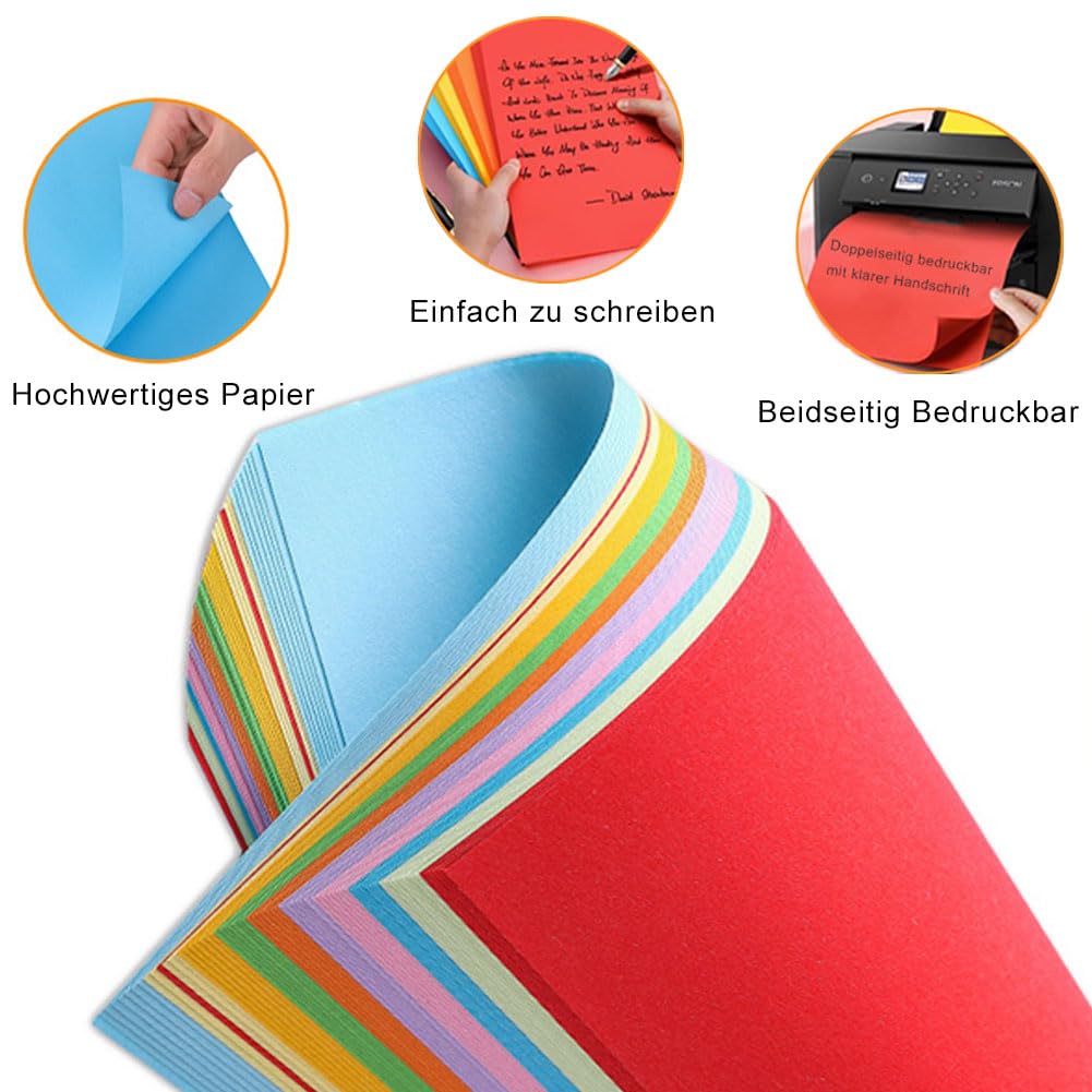 Bastelspaß für Groß und Klein! 200 Blatt buntes Papier in 20 verschiedenen Farben - von Gelb über Pink bis zu Neonfarben. Jedes Blatt ist beidseitig gleichfarbig und hat die perfekte Stärke von 70g/m² zum Falten und Schneiden. Ideal für Origami, aber auch für alle anderen Bastelprojekte. Die Farben sind kräftig und das Papier reißt nicht so leicht. Toll für Kindergeburtstage, den Kunstunterricht oder einfach für kreative Abende. Im praktischen A4 Format - da kann man auch mal was drauf drucken bevor man's faltet!