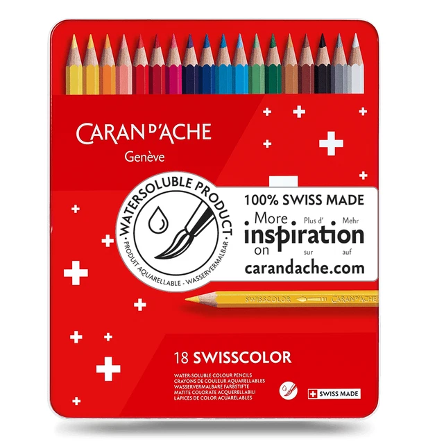 • Caran D'Ache Swisscolor Farbstifte - 18 Wasserfeste Stifte Im Etui