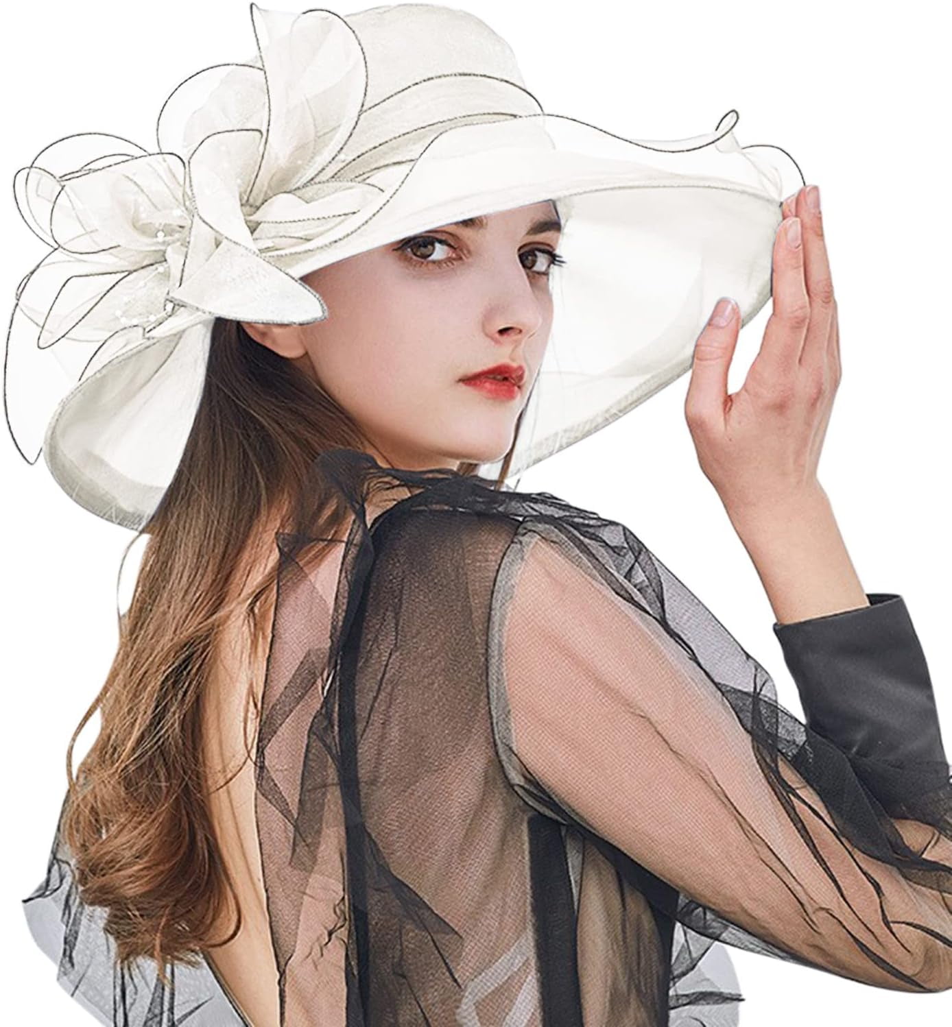 Aus zartem Organza und Gaze - super leicht und feminin. Die durchscheinende Krempe ist einfach traumhaft.