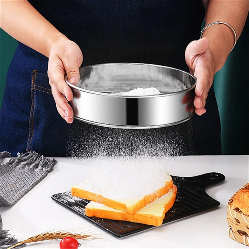 Perfektes Mehl für perfektes Backen! Dieses Edelstahl-Sieb mit feinmaschigem Netz sorgt für klumpenfreies Mehl - egal ob für Kuchen, Brot oder andere Backkreationen. Mit 40cm Durchmesser hast du genug Platz für größere Mengen. Einfach das Mehl einfüllen, sanft schütteln und schon rieselt das feine Mehl hindurch, während Klumpen und Verunreinigungen zurückbleiben. Aus robustem Edelstahl gefertigt, rostfrei und super leicht zu reinigen - einfach unter fließendem Wasser abspülen. Besonders praktisch: Du kannst damit das Mehl-Wasser-Verhältnis viel besser kontrollieren und erhältst immer die perfekte Teigkonsistenz. Ein Muss für jede Hobby-Bäckerin und jeden Profi in der Küche!