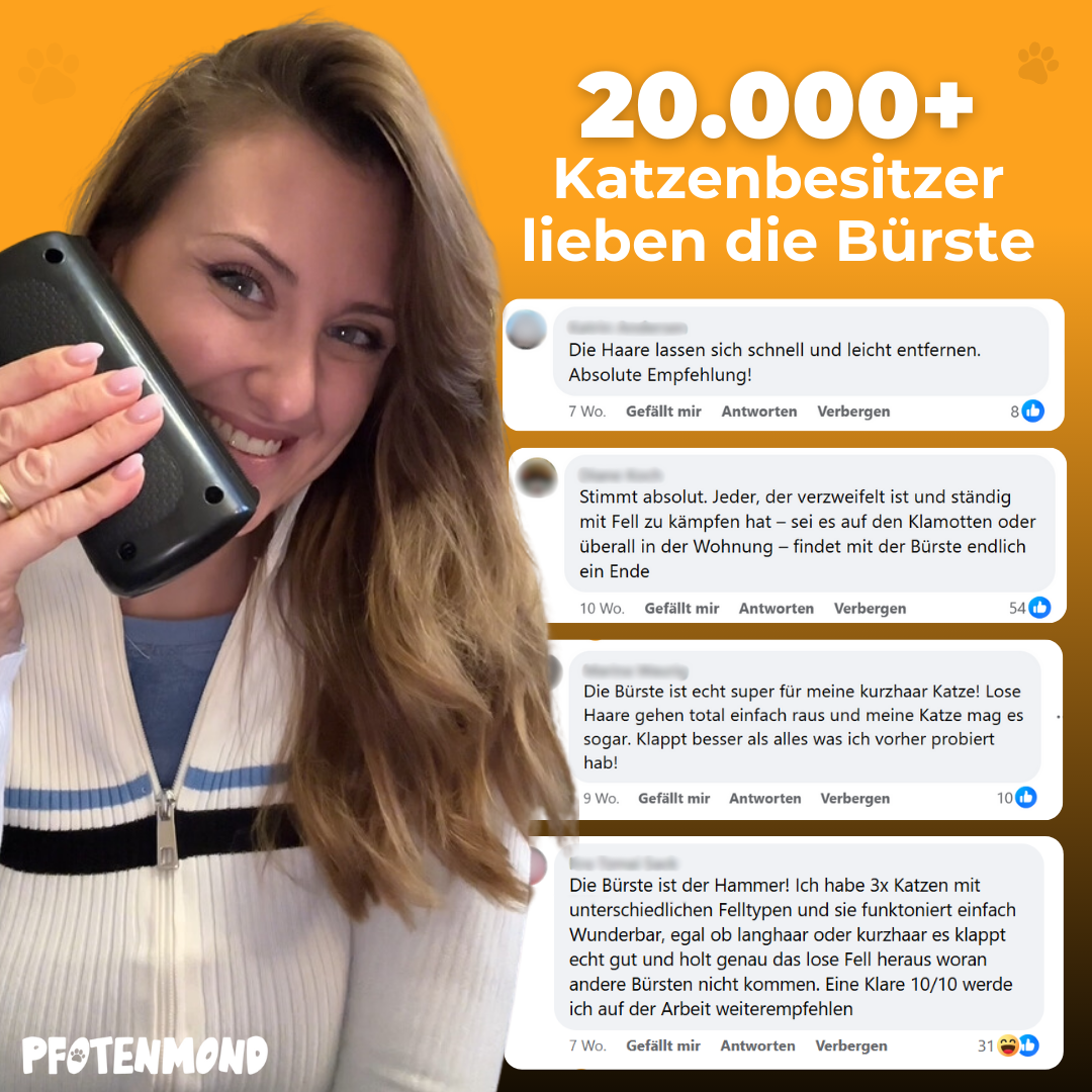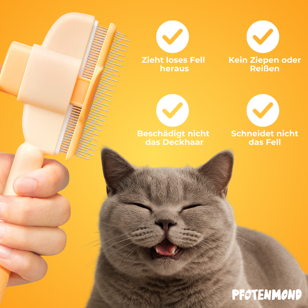 Miau! Diese Fellblitz Bürste ist der absolute Hit für alle Katzenbesitzer. Das 2er-Set in Orange und Grün besteht aus hochwertigem ABS-Kunststoff und Edelstahl - absolut harmlos und super langlebig. Die selbstreinigende Funktion ist genial: Einfach Knopf drücken und schon sind die Haare weg! Die ergonomische Form liegt perfekt in der Hand und ermüdet auch bei längerem Bürsten nicht. Besonders sanft sind die rund geschliffenen Edelstahlspitzen, die die empfindliche Katzenhaut nicht verletzen. Egal ob Langhaar- oder Kurzhaarkatze - diese Bürste entfernt mühelos lose Haare und beugt Verfilzungen vor. Deine Katze wird die entspannende Massage lieben, und du freust dich über weniger Haare in der Wohnung. Einfach bürsten, Knopf drücken, Haare entsorgen - fertig! So macht Fellpflege richtig Spaß.