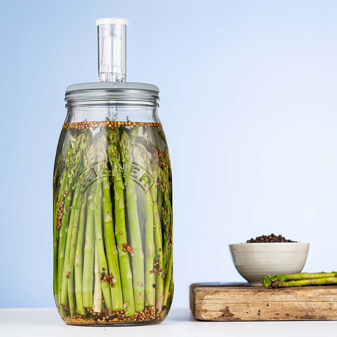 Perfekt für selbstgemachtes Sauerkraut, Kimchi oder Kefir! Dieses 1 Liter Fermentierglas aus Borosilikatglas ist absolut ideal für Einsteiger und Profis. Mit praktischem Gärventil das automatisch überschüssige Gase ablässt - kein Überdruck mehr! Die klare Skala hilft dir, die Zutaten perfekt abzumessen. Borosilikatglas ist hitzebeständig von -20°C bis +150°C - spülmaschinenfest und zum Auskochen geeignet. Der rutschfeste Silikonboden sorgt für stabilen Stand. Die große 8,5 cm Öffnung macht das Befüllen super easy - selbst ganze Gurken passen problemlos rein. Perfekt für fermentiertes Gemüse, Kombucha oder eingelegtes Obst. Gesund und lecker - selbst gemacht schmeckt's einfach am besten! Einfach zu reinigen und hygienisch. Macht Fermentieren zum Kinderspiel! Ideal für alle die gesunde Ernährung lieben. So einfach war Fermentieren noch nie! Probier's aus - dein Darm wird's dir danken! Perfektes Geschenk für Foodies und Hobbyköche. Einfach mal was Selbermachen statt immer nur kaufen!