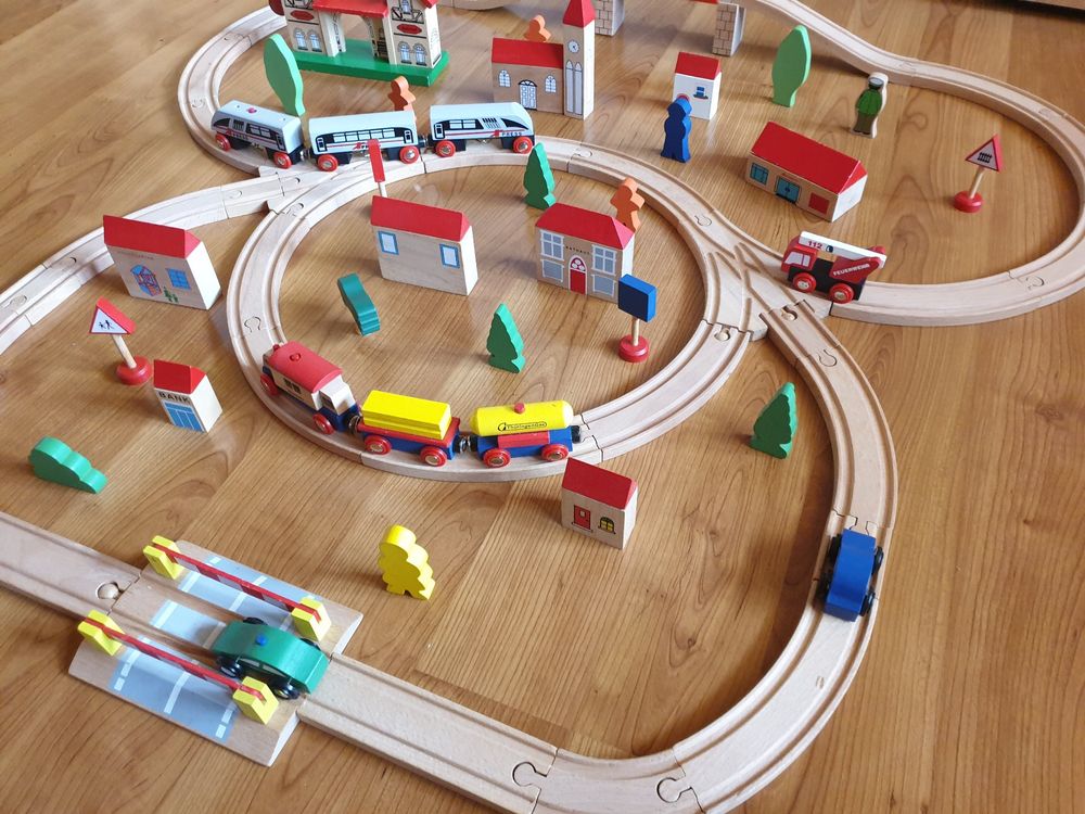 Diese YANGUN Elektrolok bringt Leben in deine Holzeisenbahn! Mit Fernbedienung steuerbar - vorwärts, rückwärts, anhalten. Realistische Licht- und Soundeffekte machen das Spiel noch spannender. Kompatibel mit Thomas, Brio und anderen Marken. Magnetische Kupplung hält die Waggons sicher zusammen. Aus robustem ABS-Material, sturzfest und langlebig. Für Kinder ab 3 Jahren perfekt geeignet. Batteriebetrieben (4x AA, nicht enthalten). Einfach auf die Schienen setzen, einschalten und die Fahrt kann beginnen!